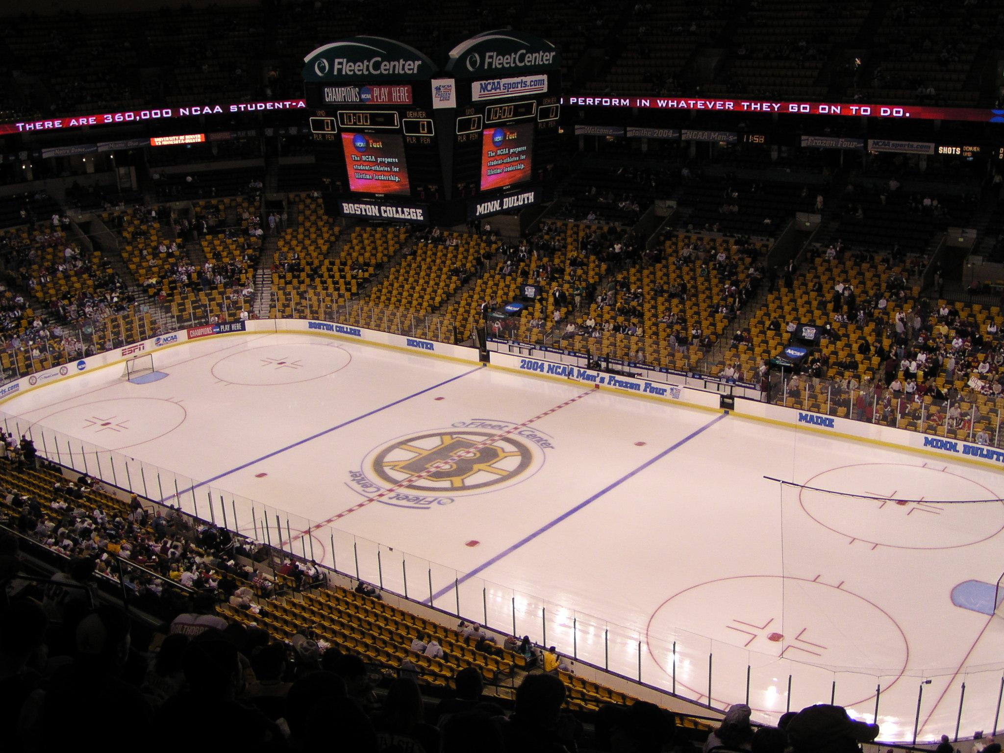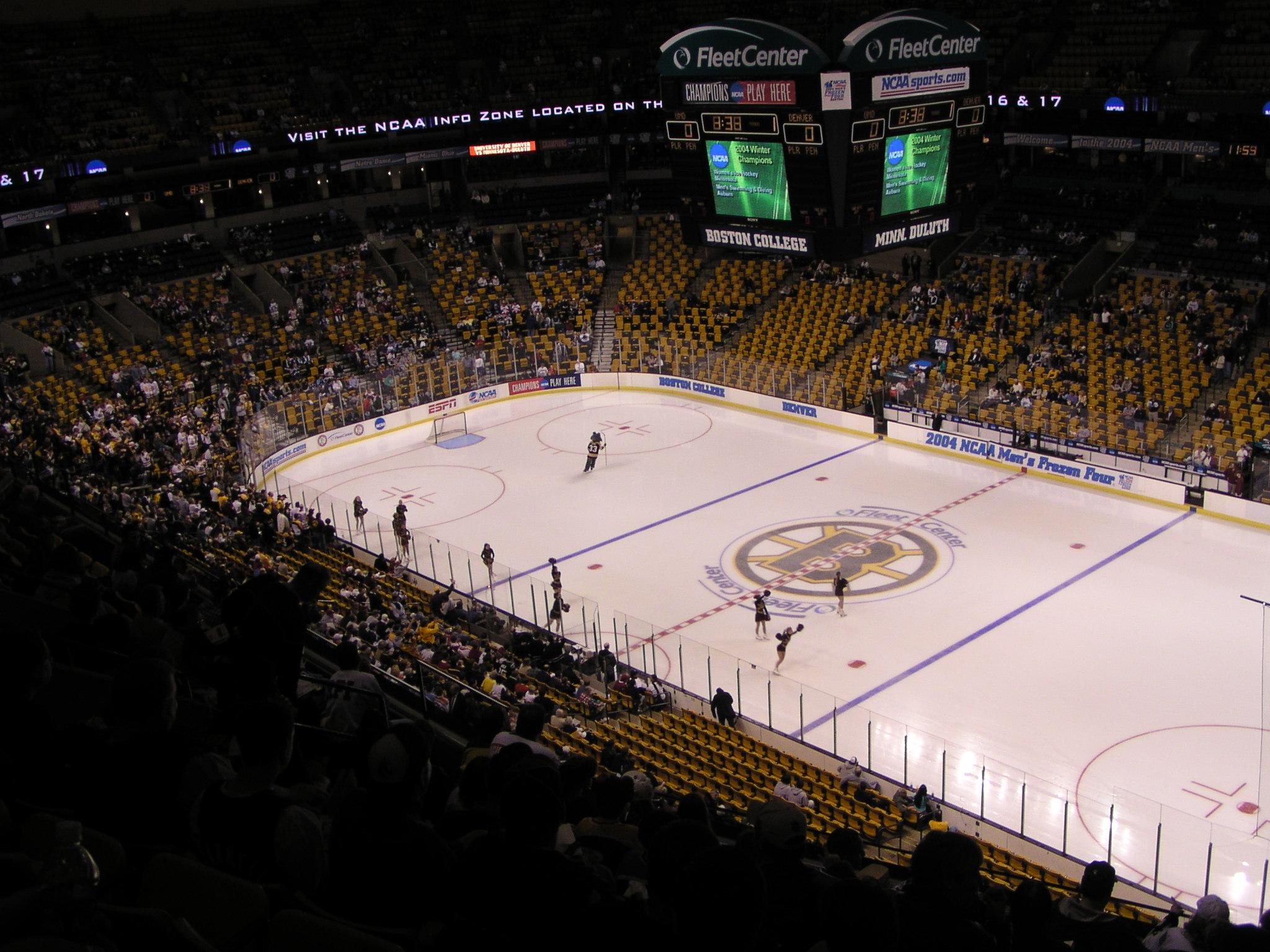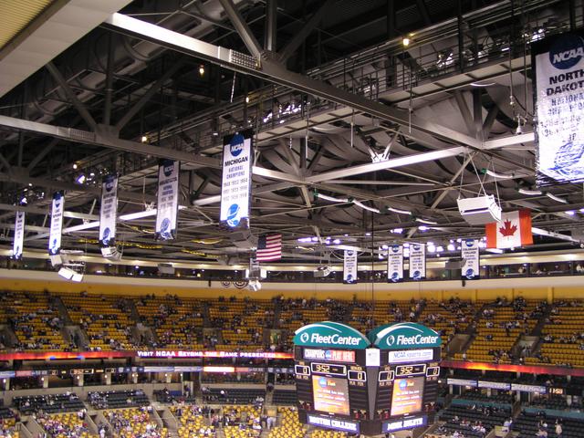 Bruins and Celtics banners replaced by NCAA banners only. Silly.