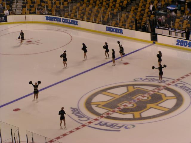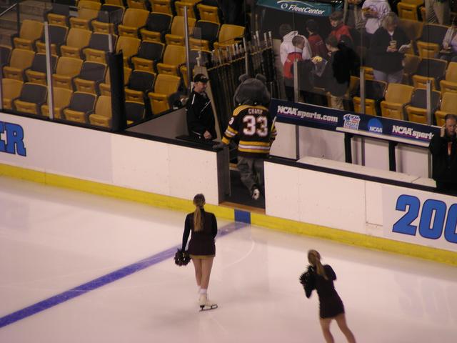 Not long now. They had to leave the Big B on the ice (as much as the NCAA hates that) because of Bruins playoff games the night before and the night after these semifinal games.