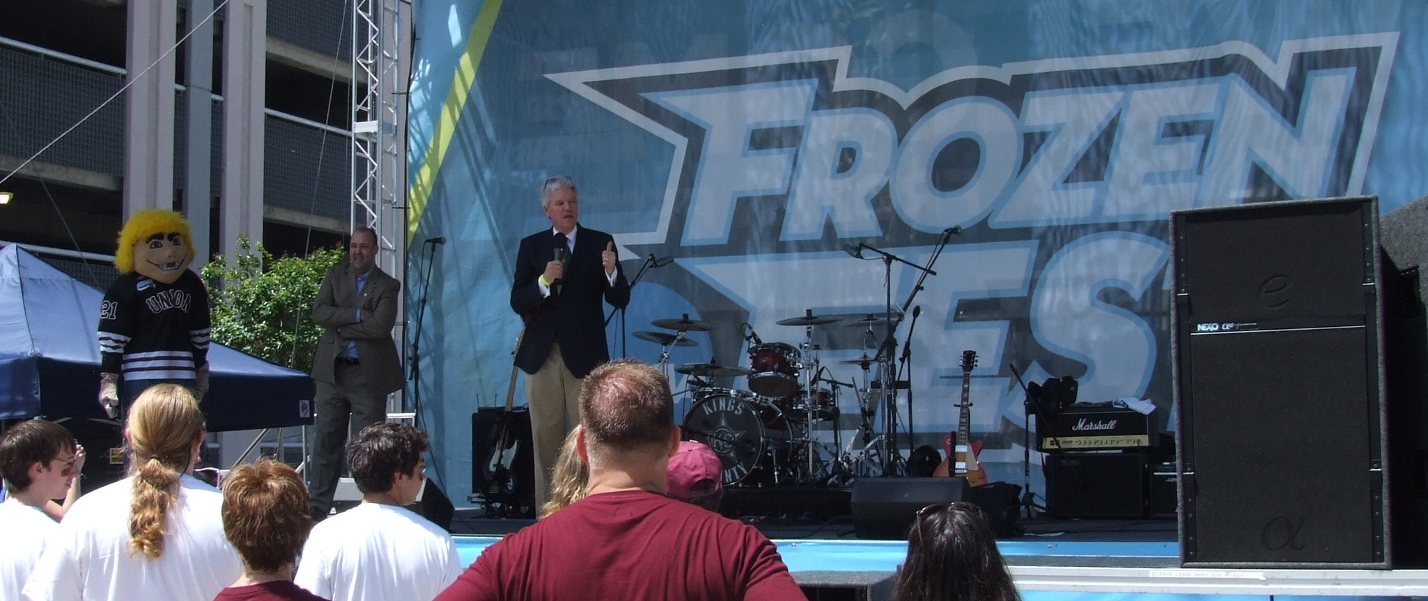 The Union mascot working the crowd.