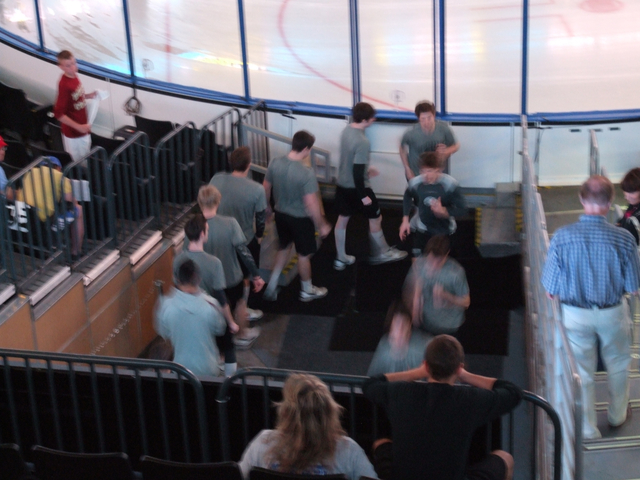 The Union Hockey team warming up before warmups.