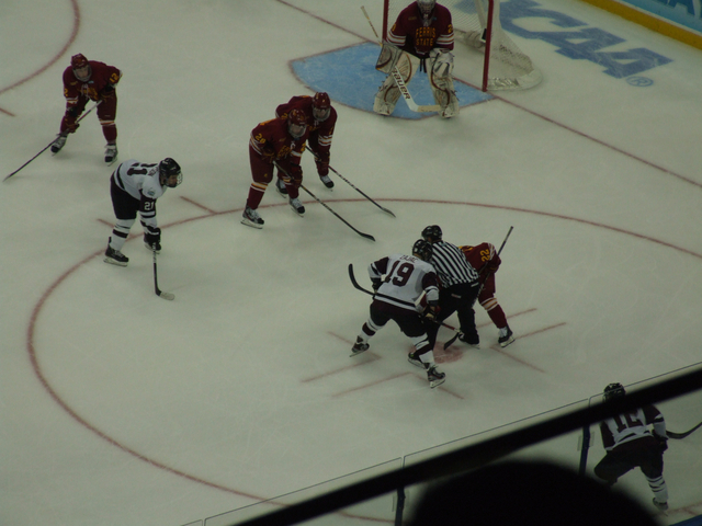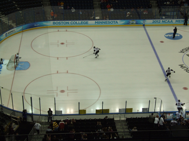 Union Hockey on Frozen Four warmup ice.
