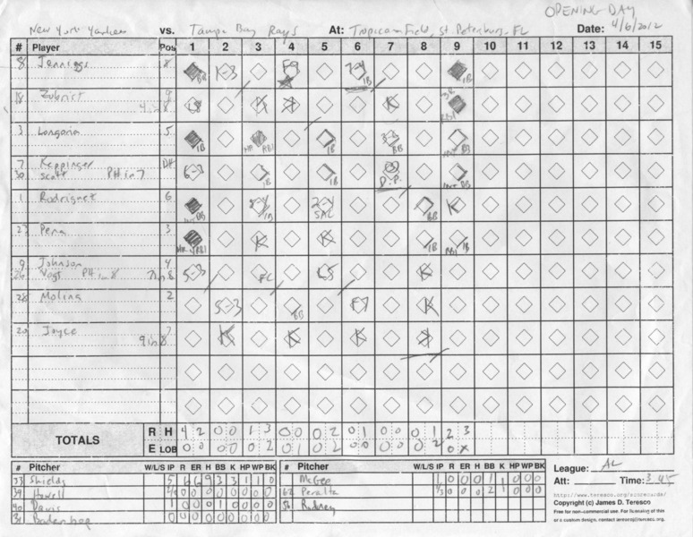 New York Yankees vs. Tampa Bay Rays, Tropicana Field, St. Petersburg, Florida - April 6, 2012