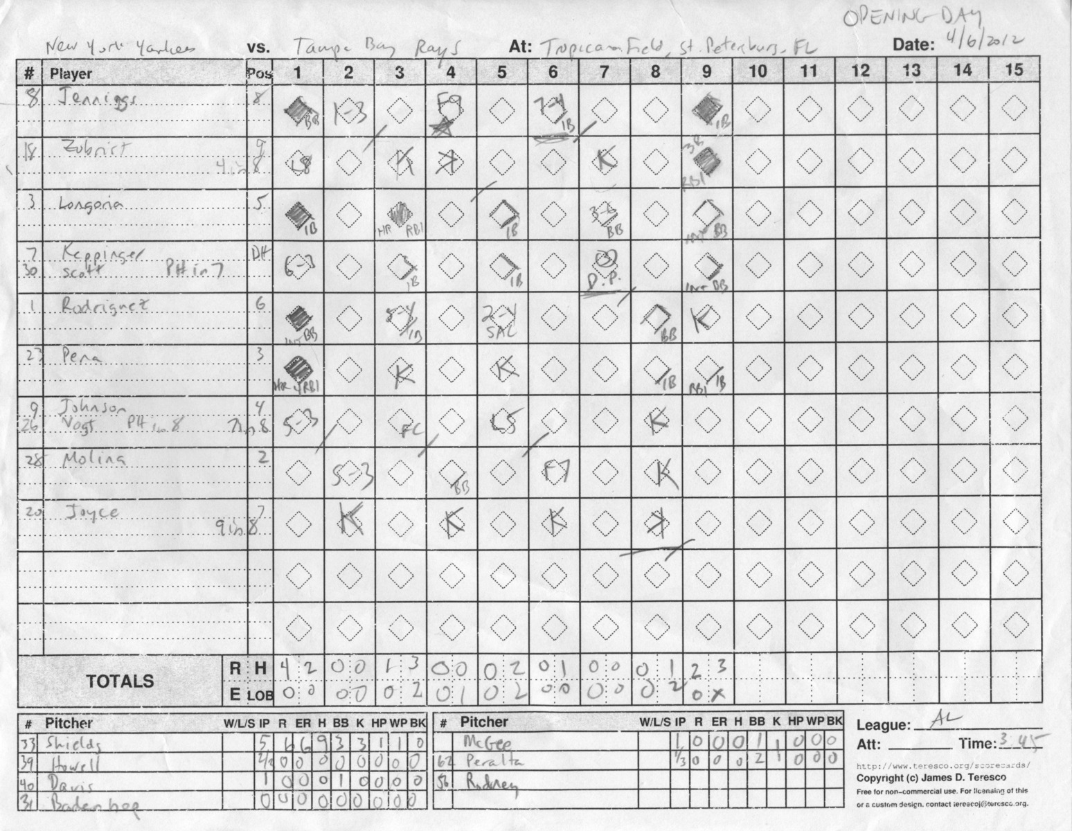 Rays, on April 6, 2012.