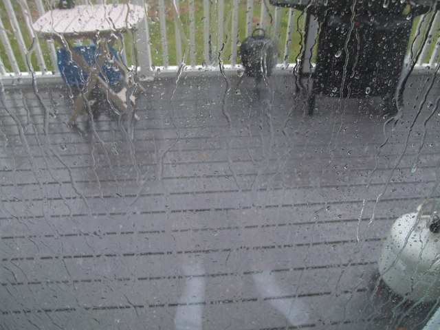 Hard to see through the glass, but there's some small hail out there.