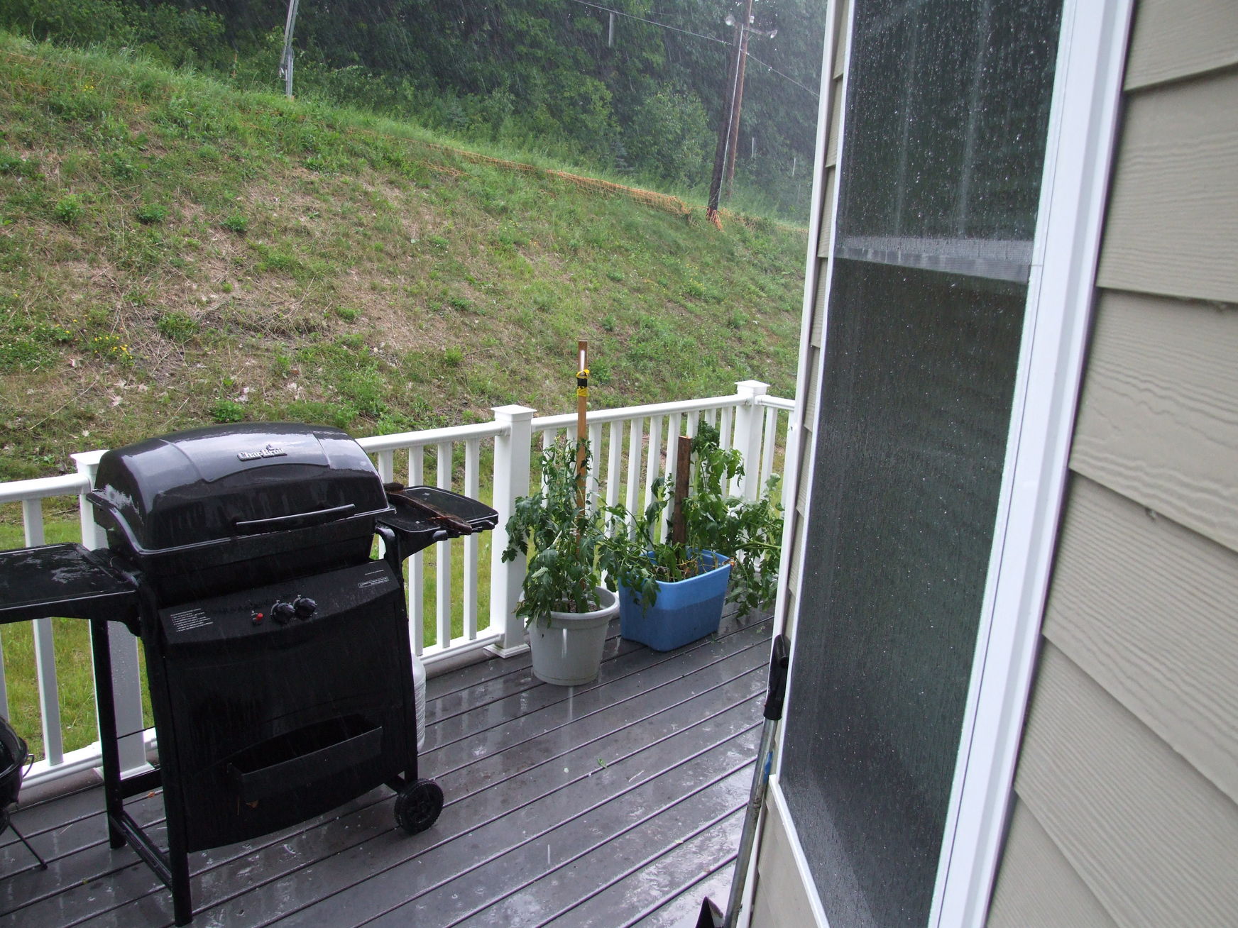 The tomato plants weren't happy with the small hail.