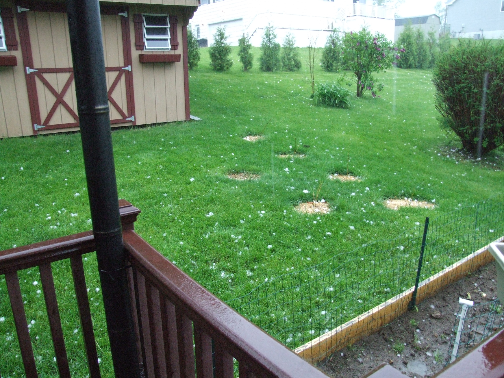 These pictures were taken with my Fujifilm Finepix S9000 and movie with my iPad2 at our house in Amsterdam, New York, during a thunderstorm with very large hail on May 22, 2014. The same storm shortly after produced an EF-3 tornado in Duanesburg. Images are shown at a resolution of 800x600. Larger image formats are available by clicking the links below each image.