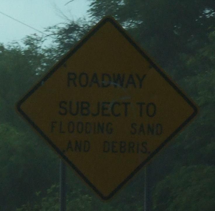 With the high surf, some water and sand are washed up on the road.