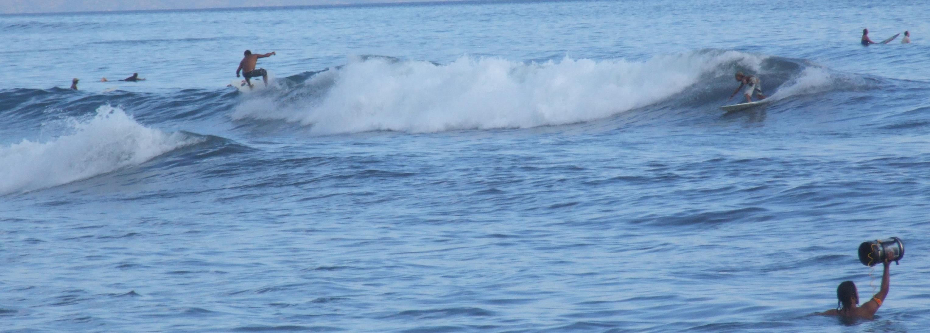 And down at the surfers.