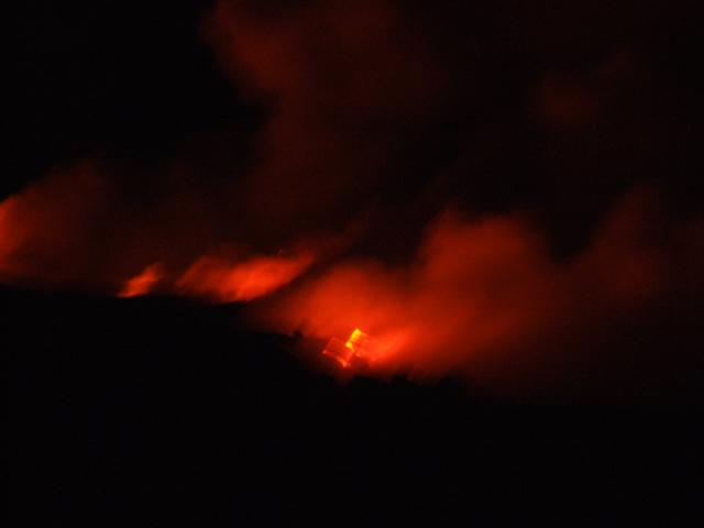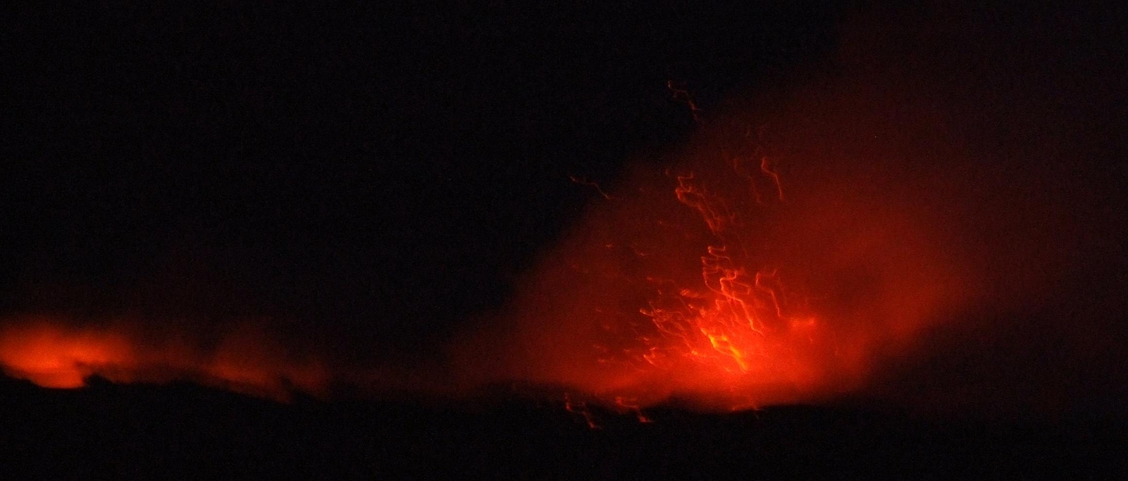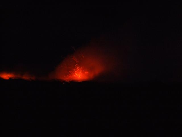 see occasional explosions of lava shooting up in the air above the