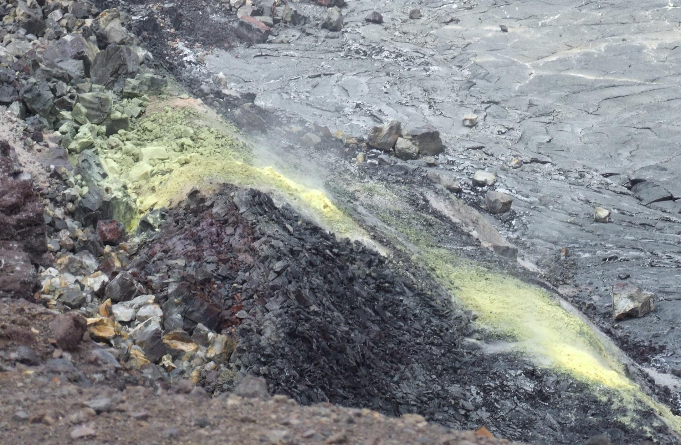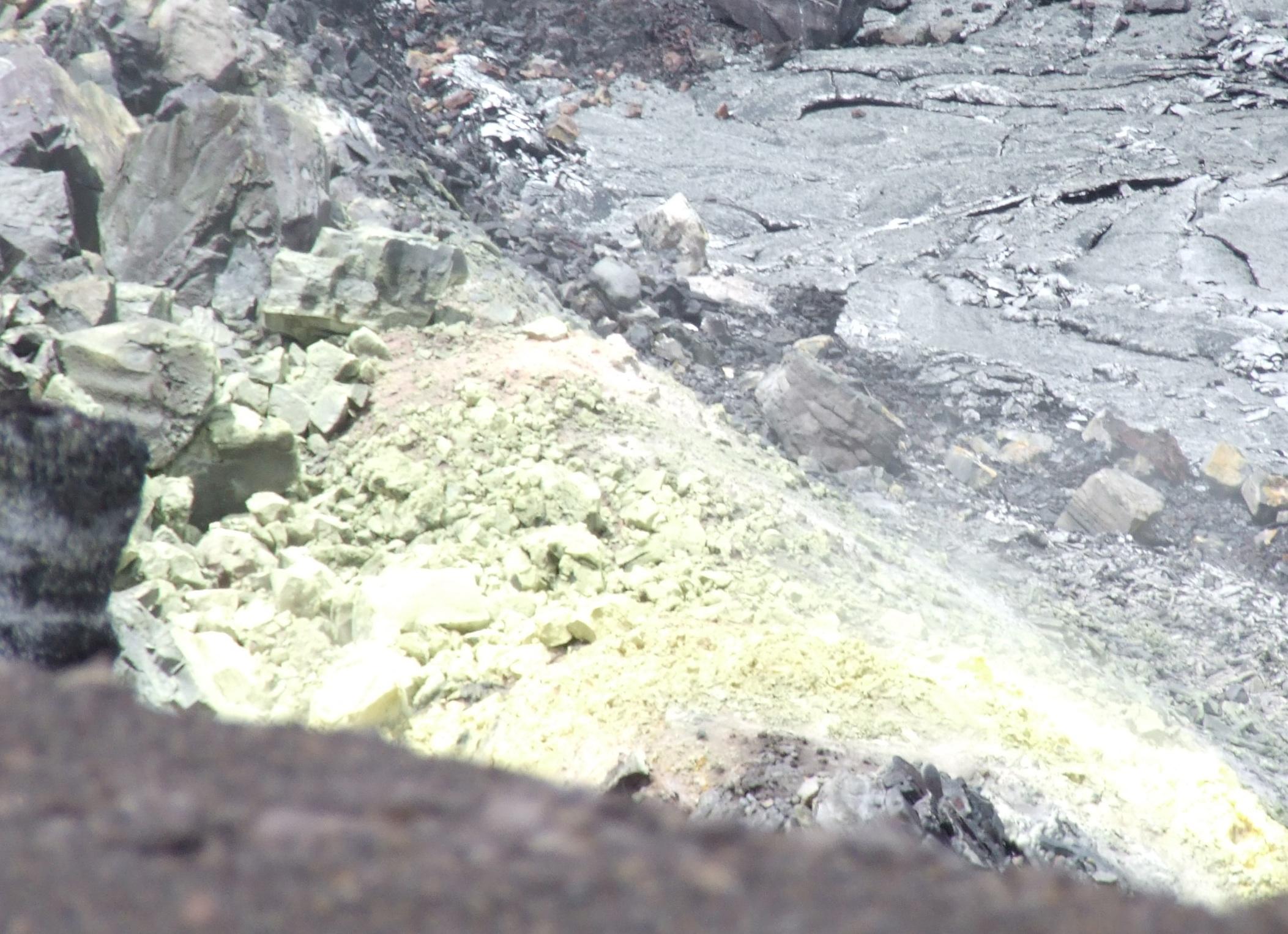 Closer view of those sulfur deposits.