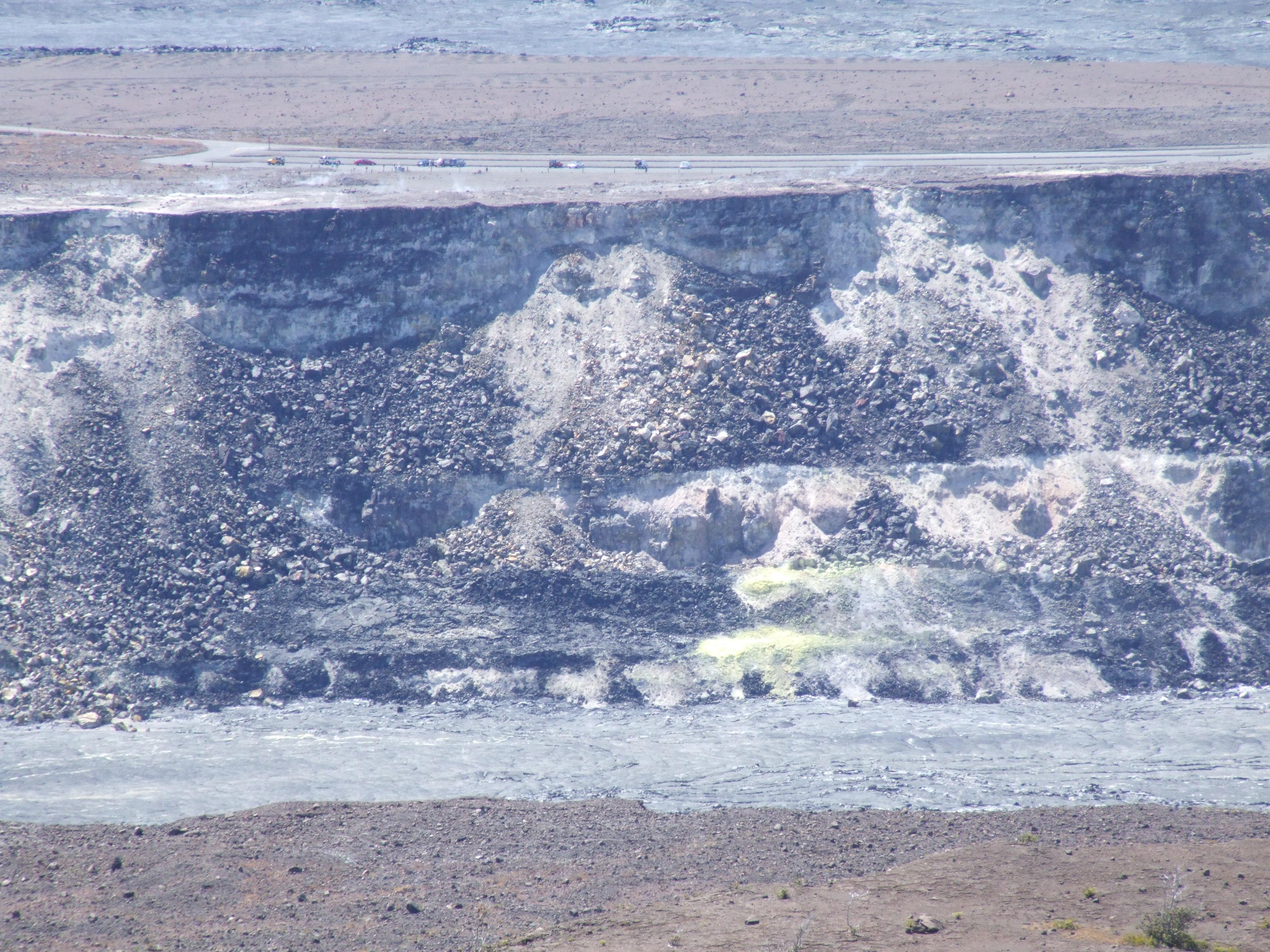 Look at the side of Halema'uma'u. Later pictures are from the overlook near the parking lot above the crater in this picture.