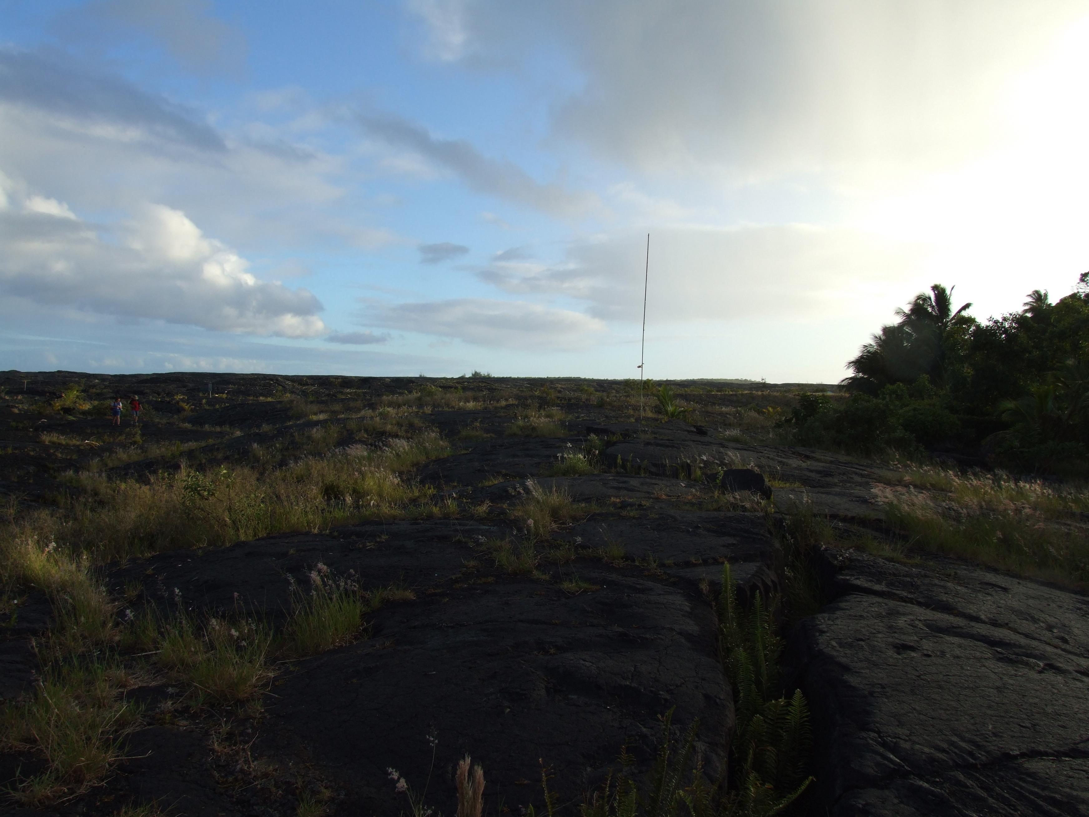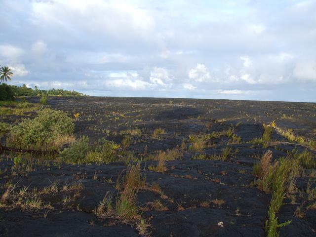 The former site of the Kalapana Black Sand Beach. In 1990, lava flows