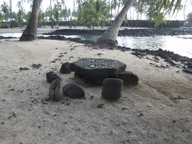 on a replica papamu, or stone playing surface."