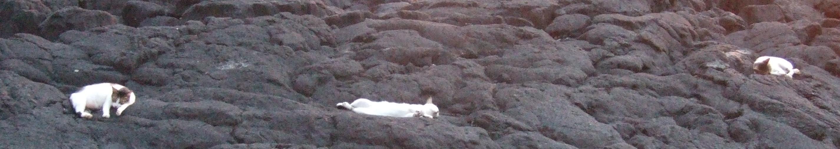 Cats down on the lava rocks.