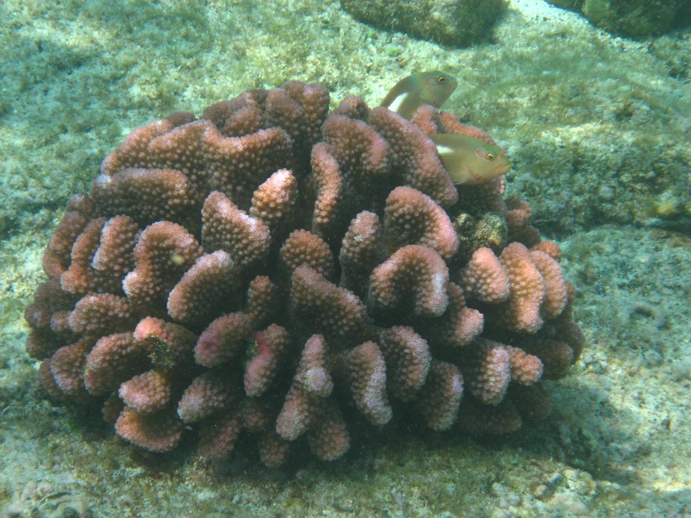 Coral with a couple of fish tucked in. Mutualism?