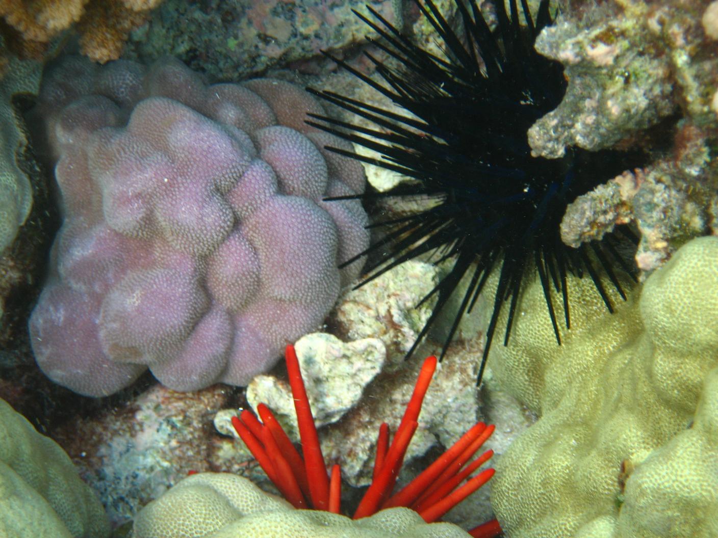 Rock-boring urchins and some neat looking coral.