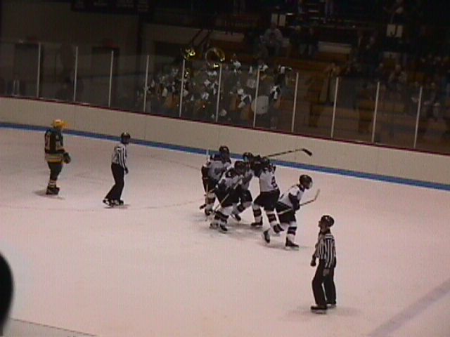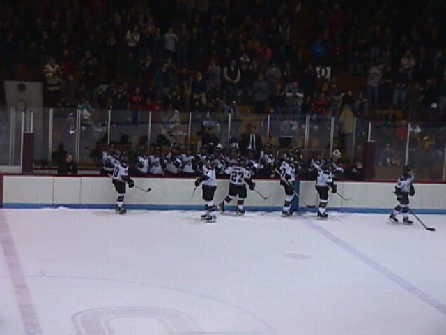 A large contingent of hockey alumni and others in Section Q.