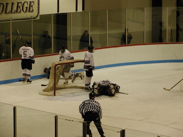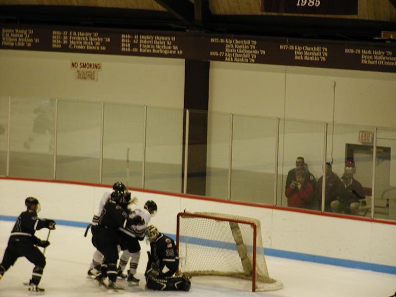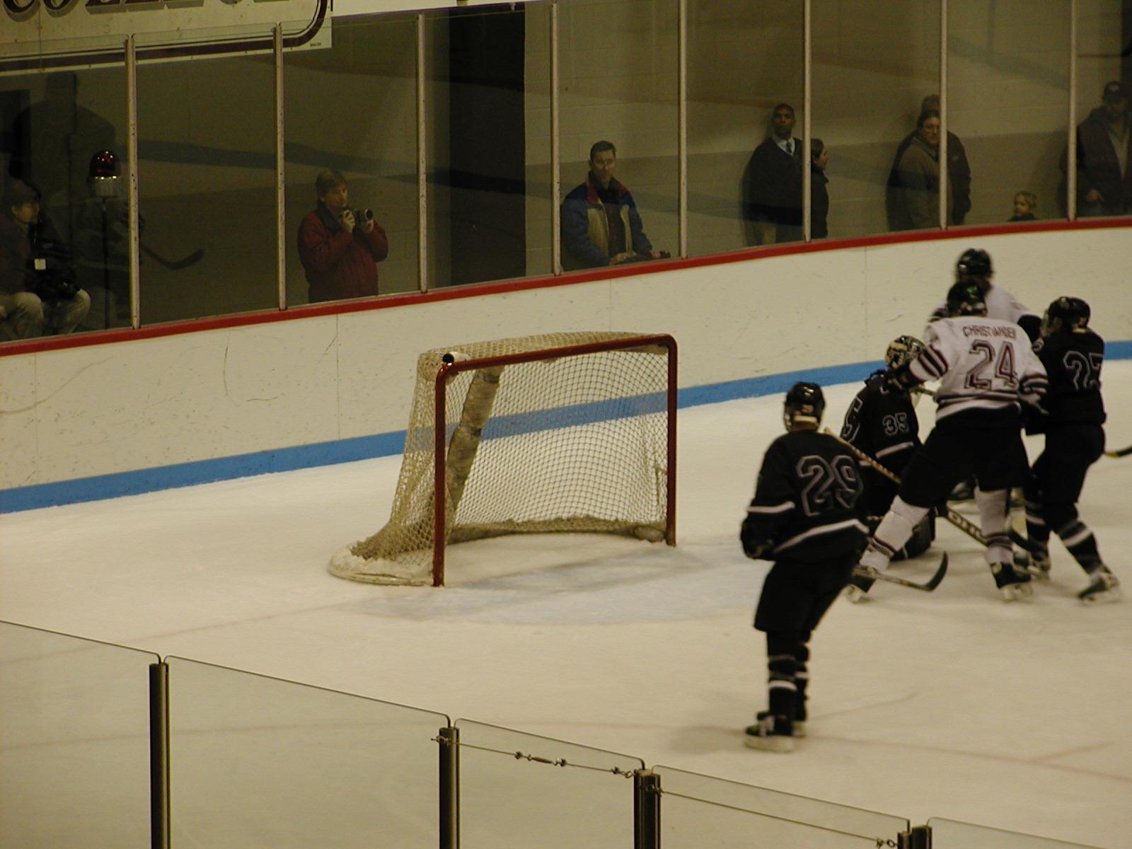 picture. A stick got lodged in the boards behind the net and remained