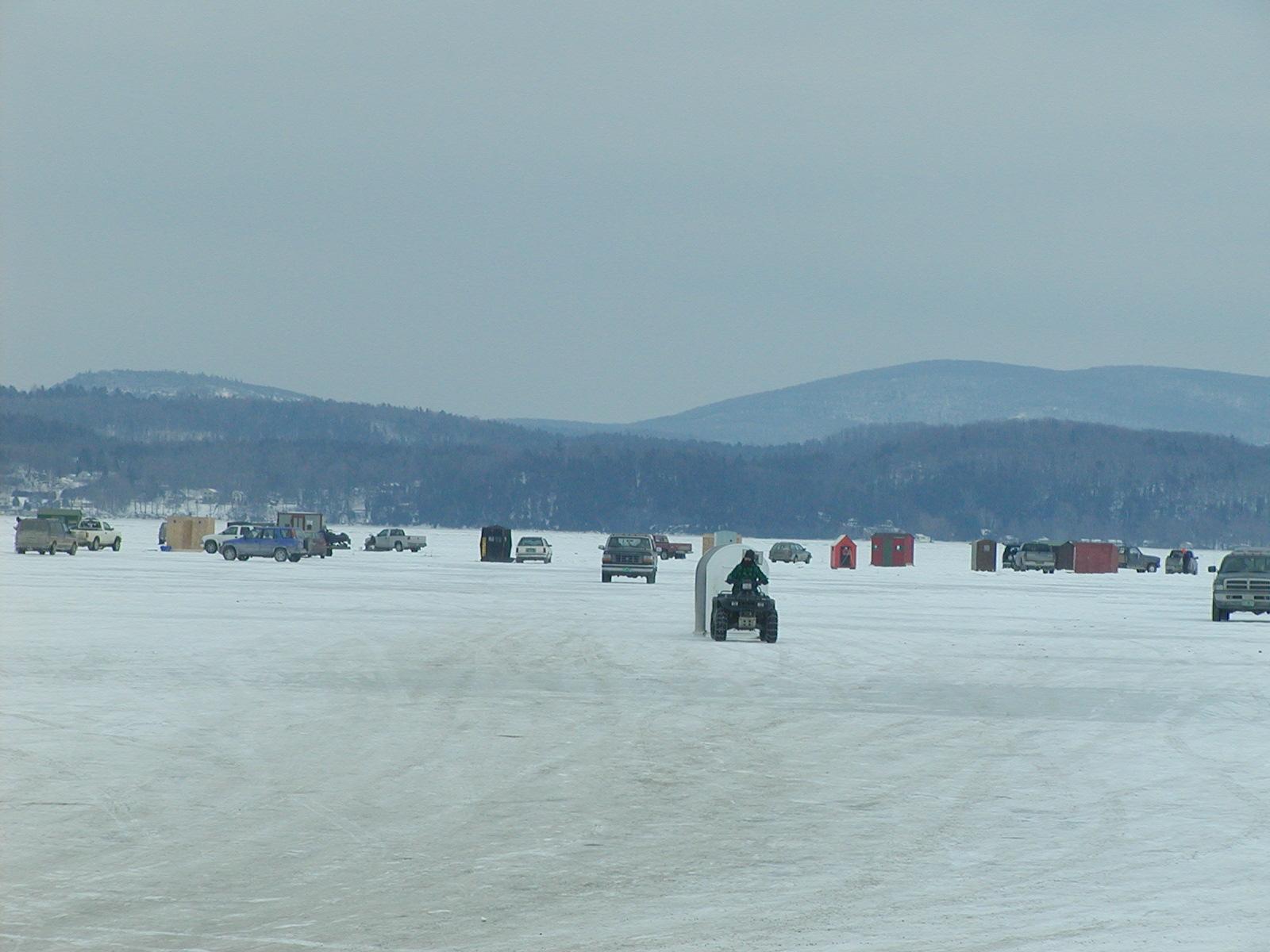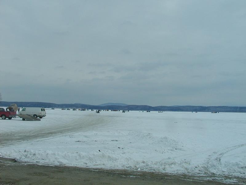 Ice fishers on frozen Lake Champlain near South Hero.