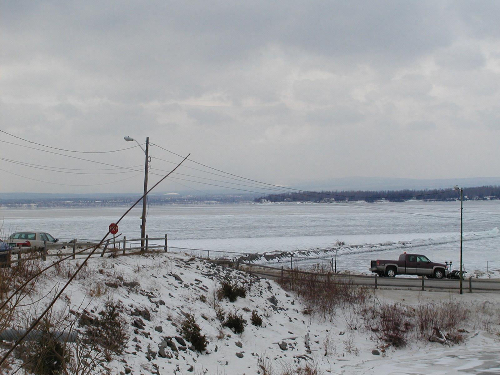 Much of the lake is frozen over here, too.