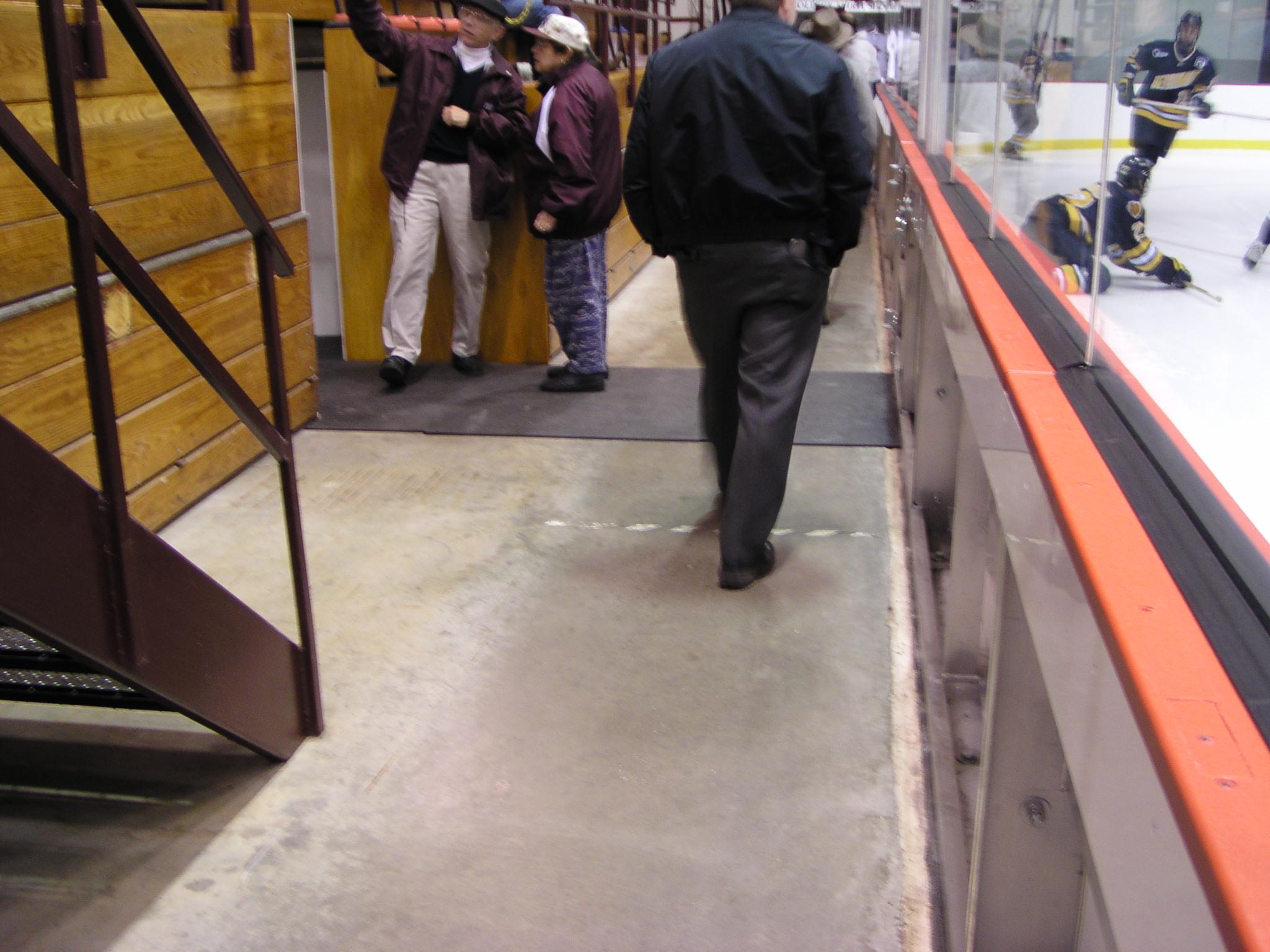More space behind the penalty boxes at the entrance to the main lobby. These renovations cost almost 300 seats, reducing capacity to 2225.