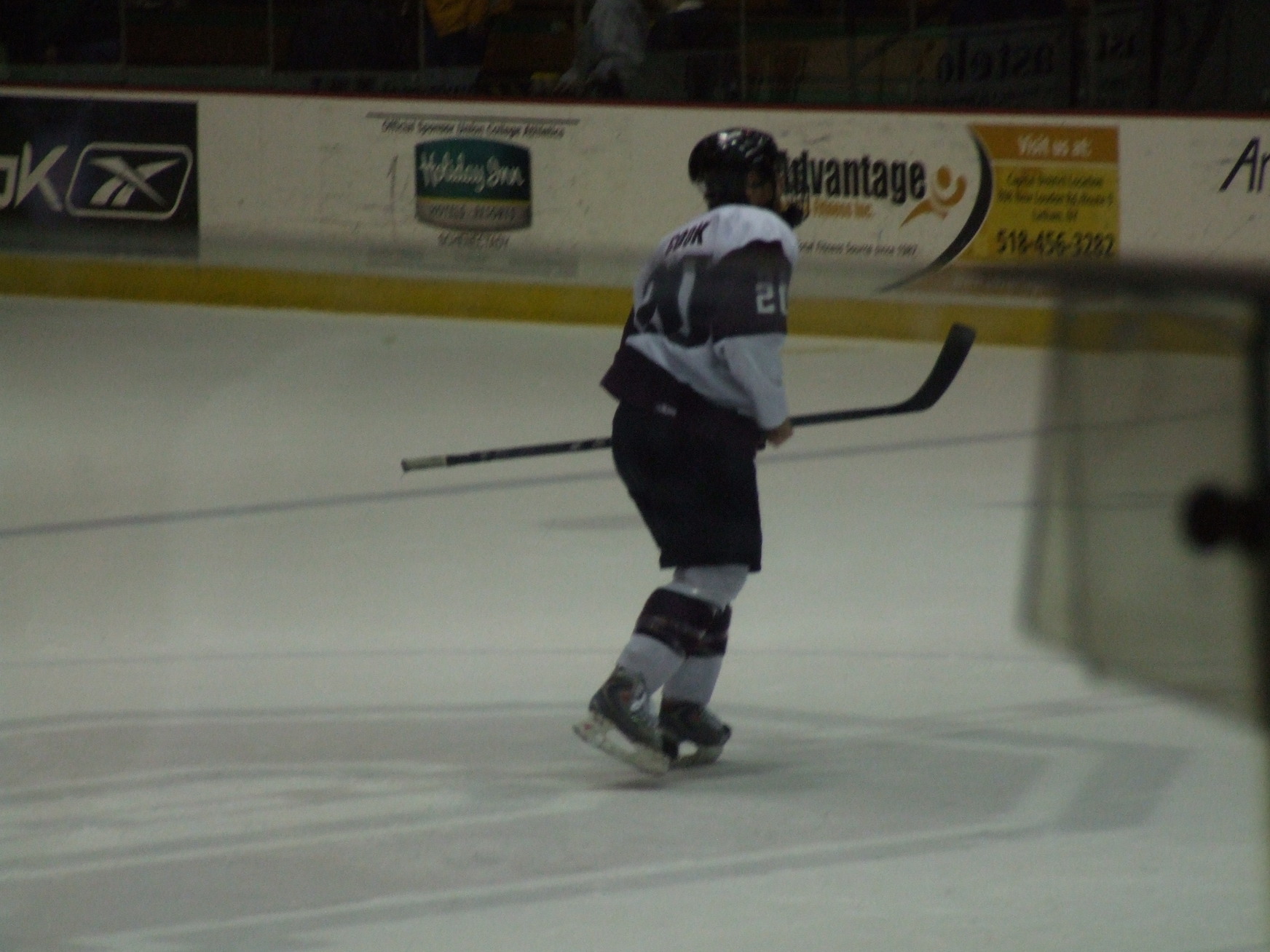 Matt Cook leaving the ice with a handful of ice scrapings from center ice.