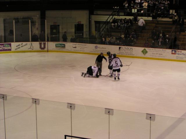 In the third, Soctt Seney went down after being kneed by Jean-Francois Boucher.
