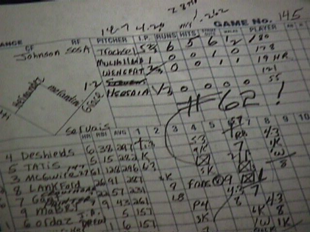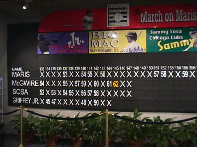 The big "March on Maris" board. Sosa's 59th, hit about an hour earlier, wasn't up yet.