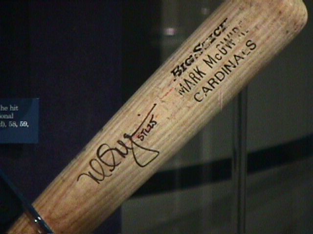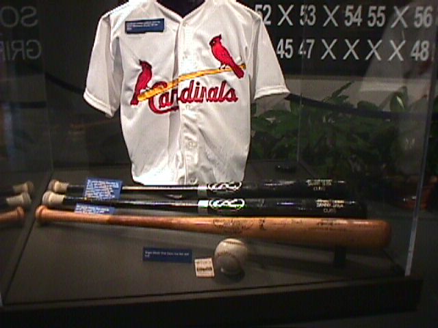 Matt McGwire's bat boy jersey, plus two Sosa bats and the Maris #61 bat and ball.