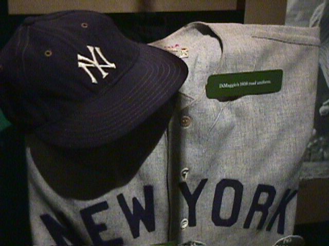 Joe DiMaggio's 1936 jersey and cap.