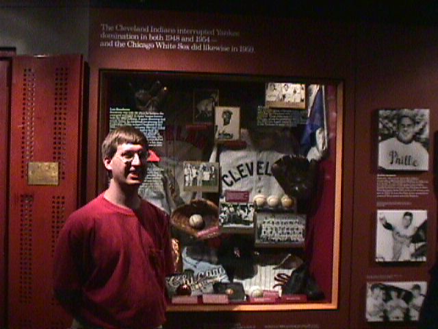 Rick in front of the 1948 Indians case. The more recent Indians World Championship.