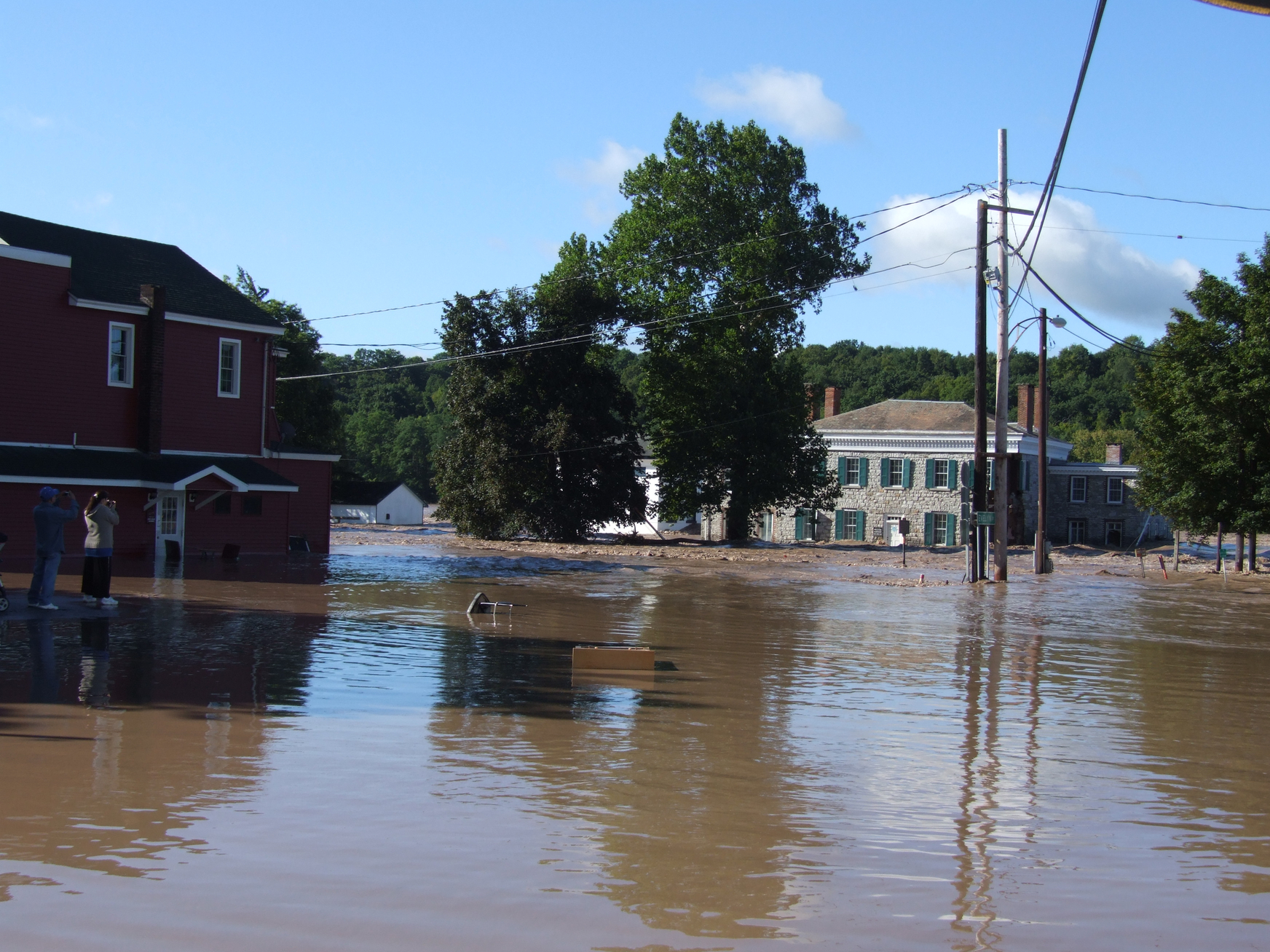 Water rushing down West Main Street at Caroline.