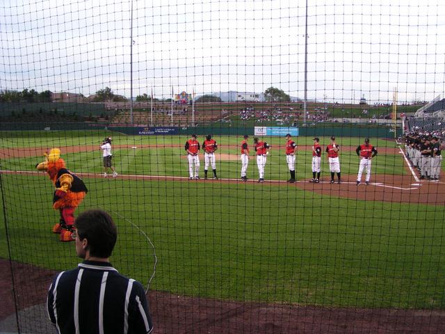 Since it's a playoff game, the first in Isotopes history, they introduced all the players before the game.