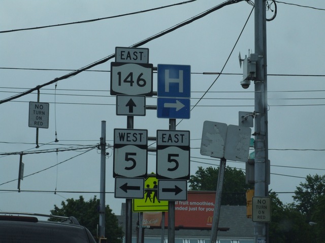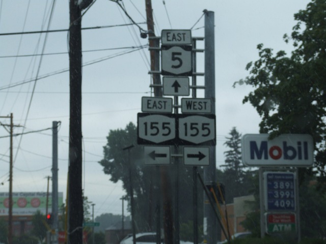 NY 5's eastbound arterial comes out onto East Main.