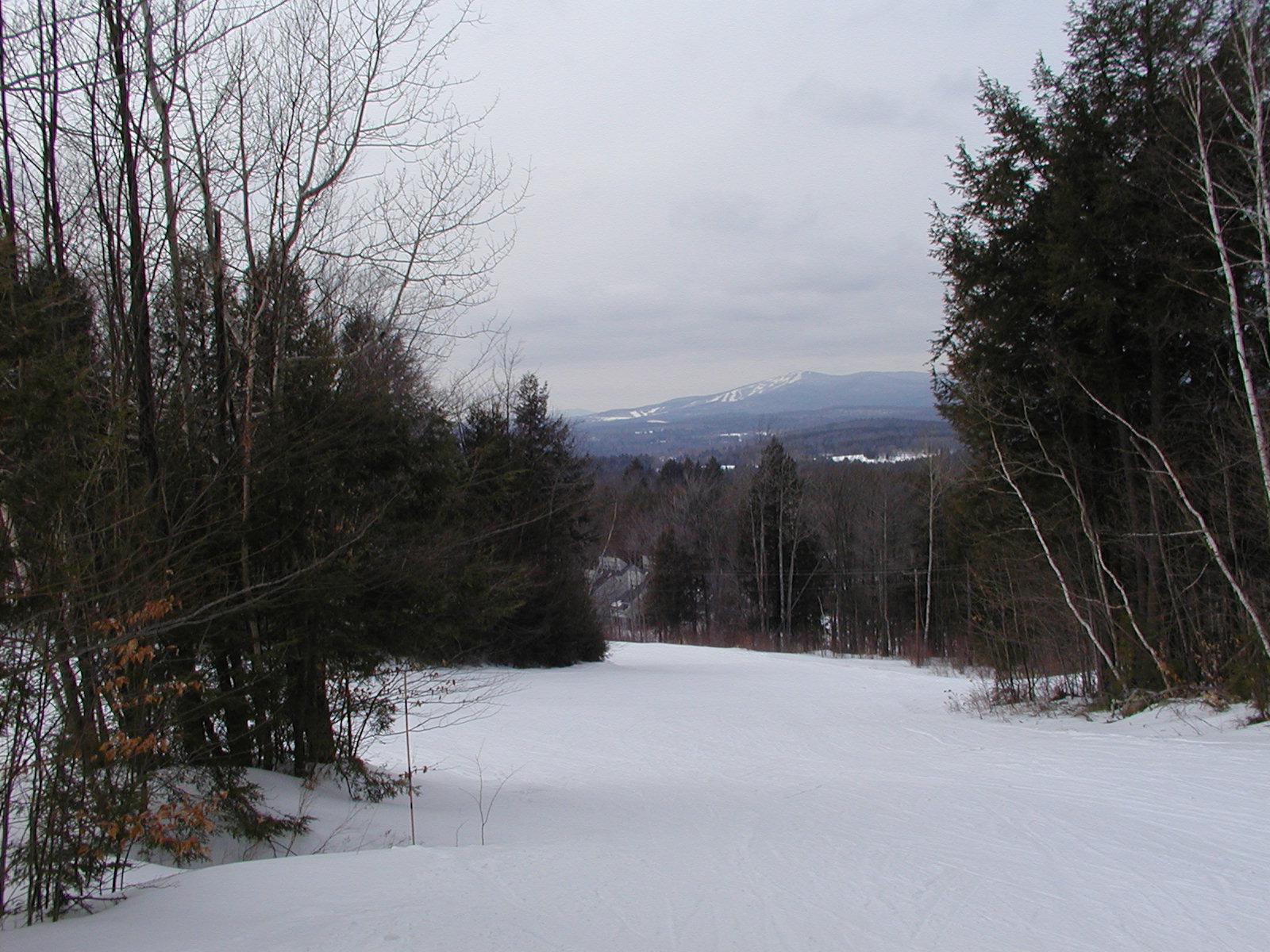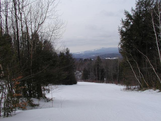 Approaching the base area. Bromley Mountain is again visible in the distance.