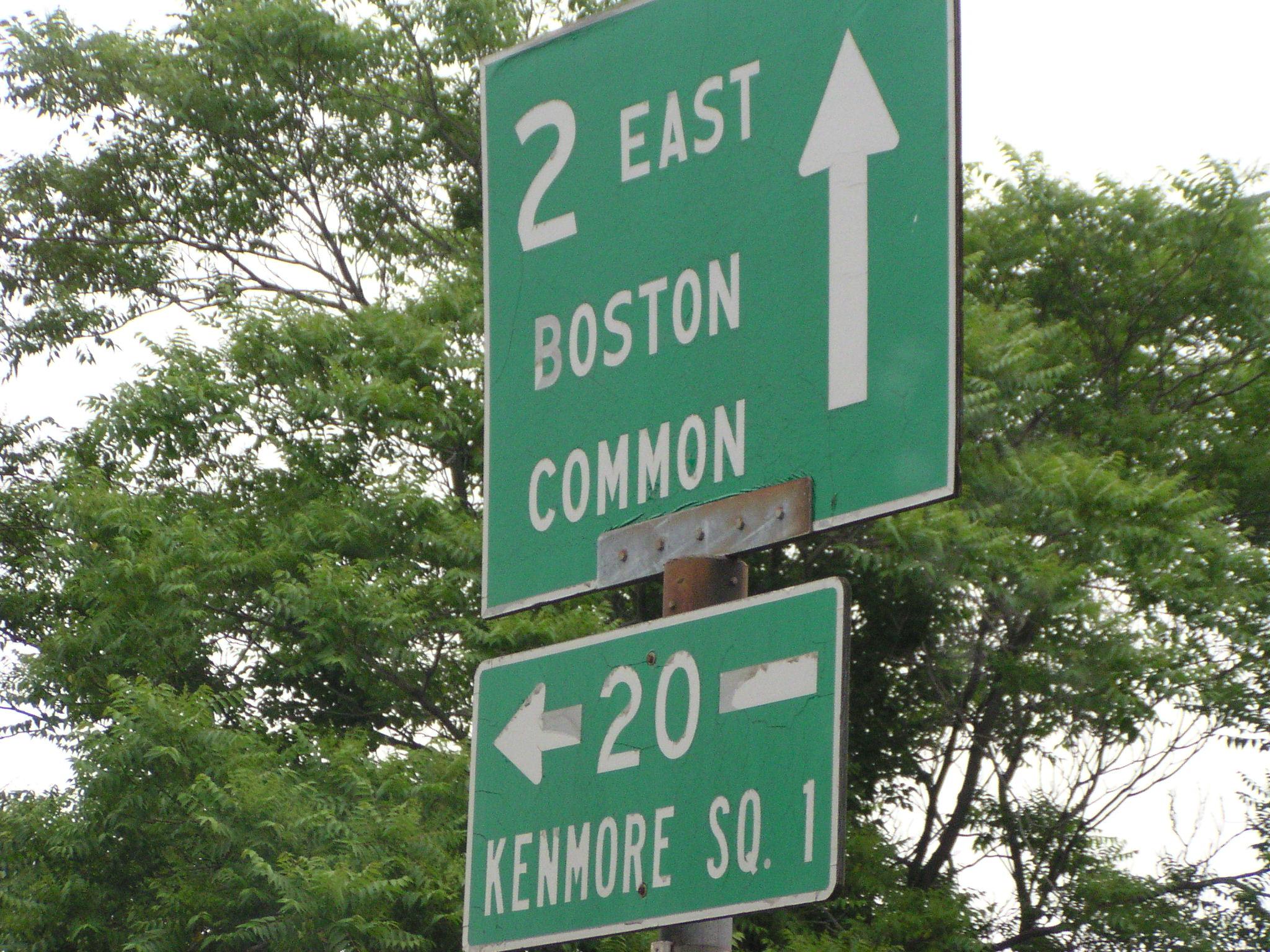 Massachusetts 2 and US 20 split here.