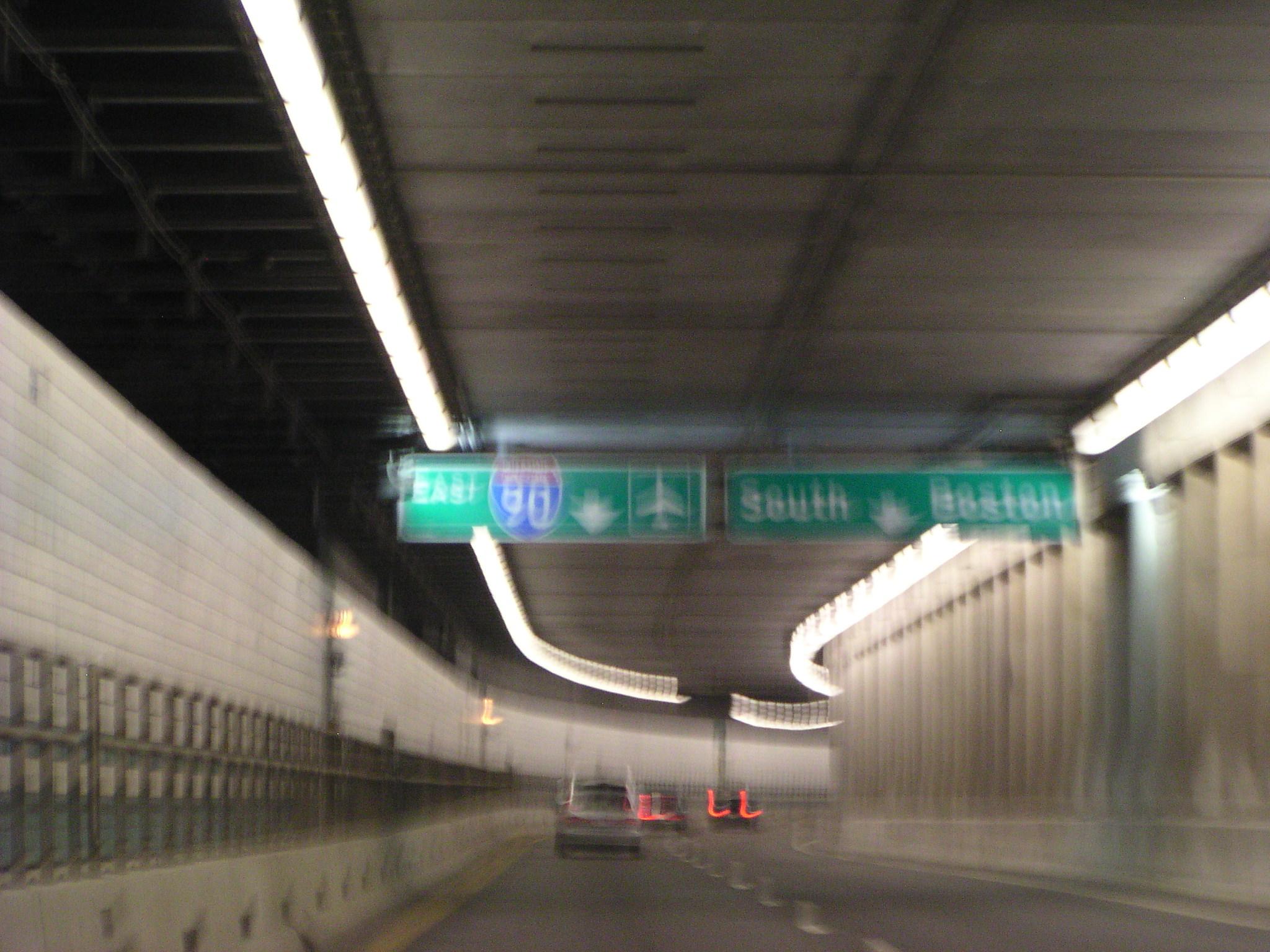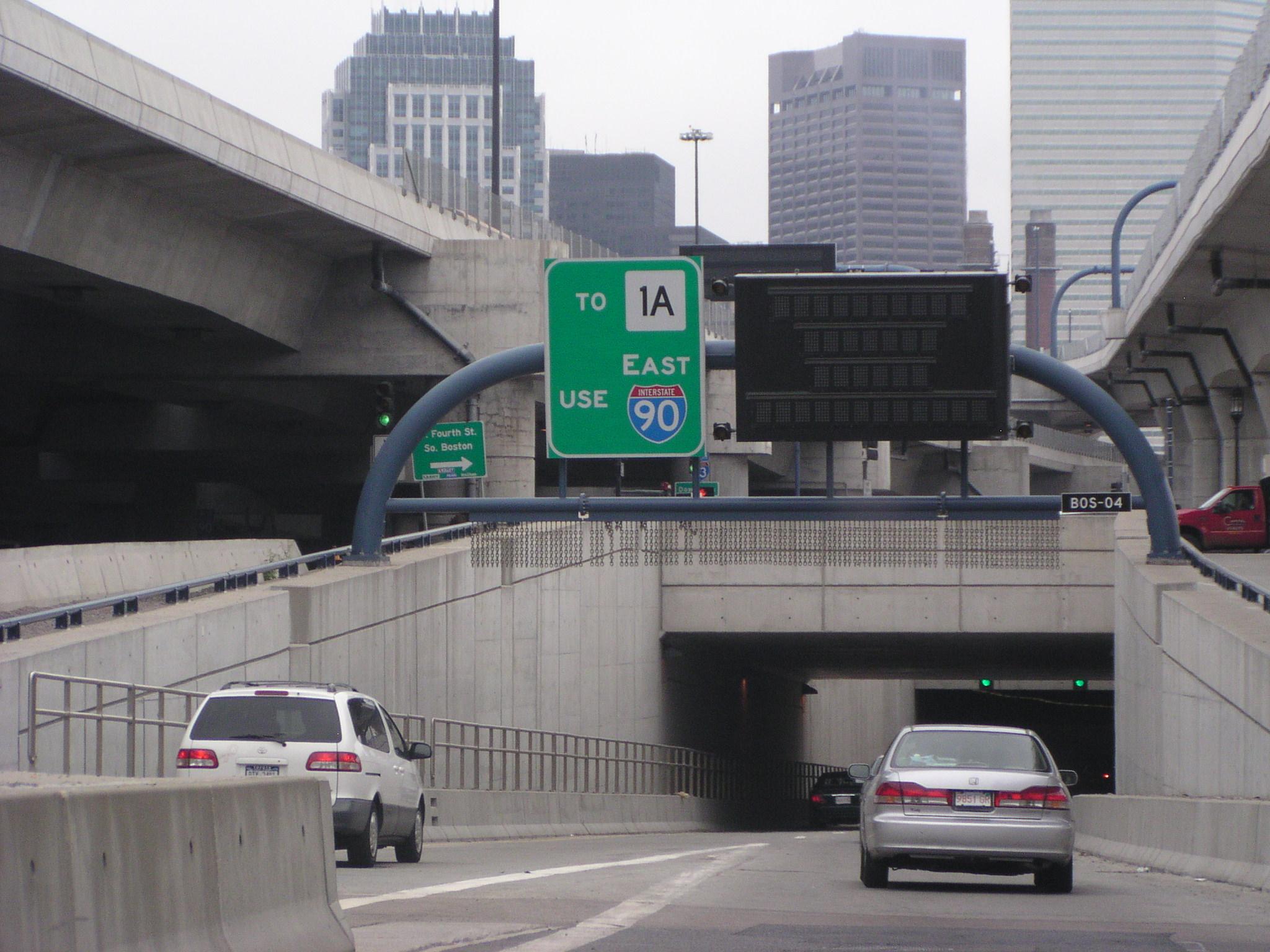 Into the I-90 part of the Big Dig headed toward the Ted Williams Tunnel.