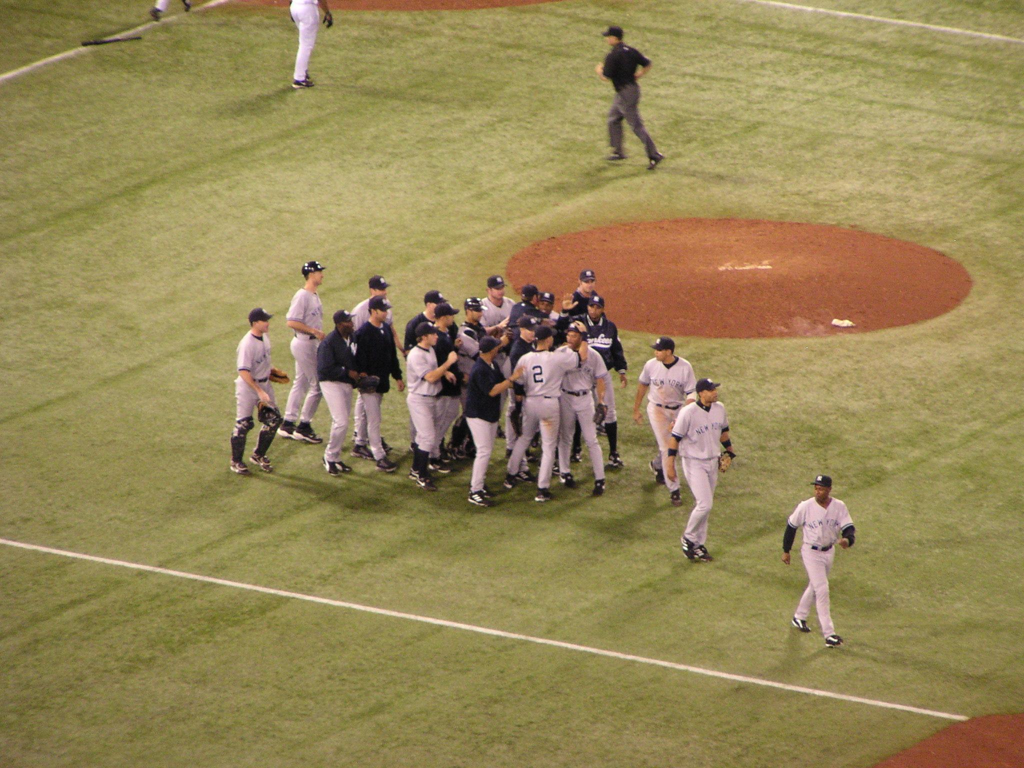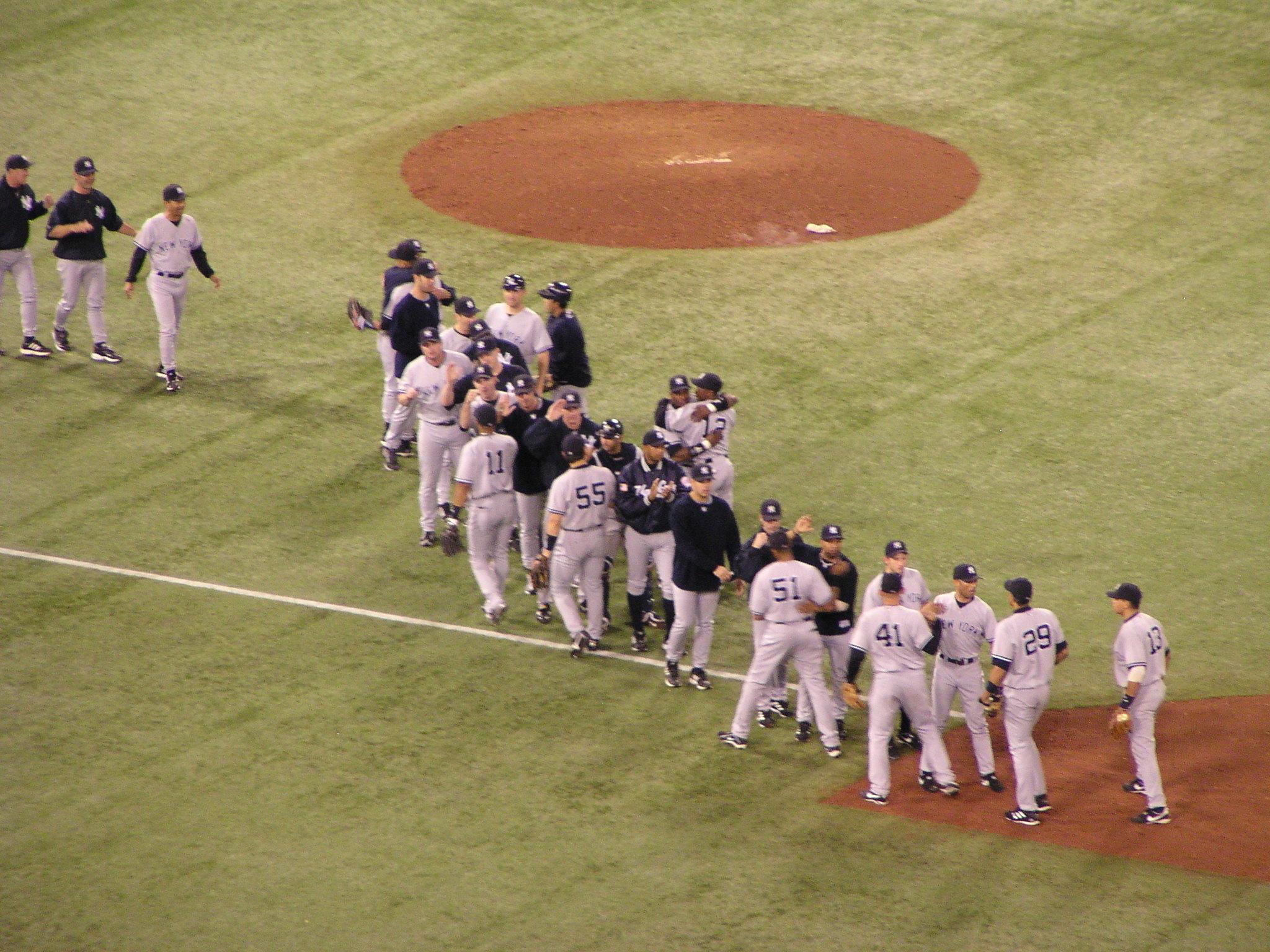 After the game, the Yankee have only a subdued on-field celebration.