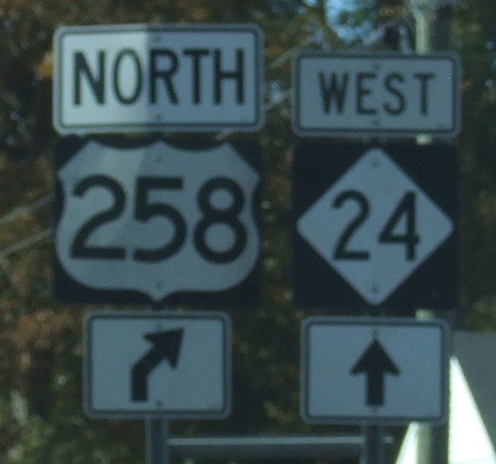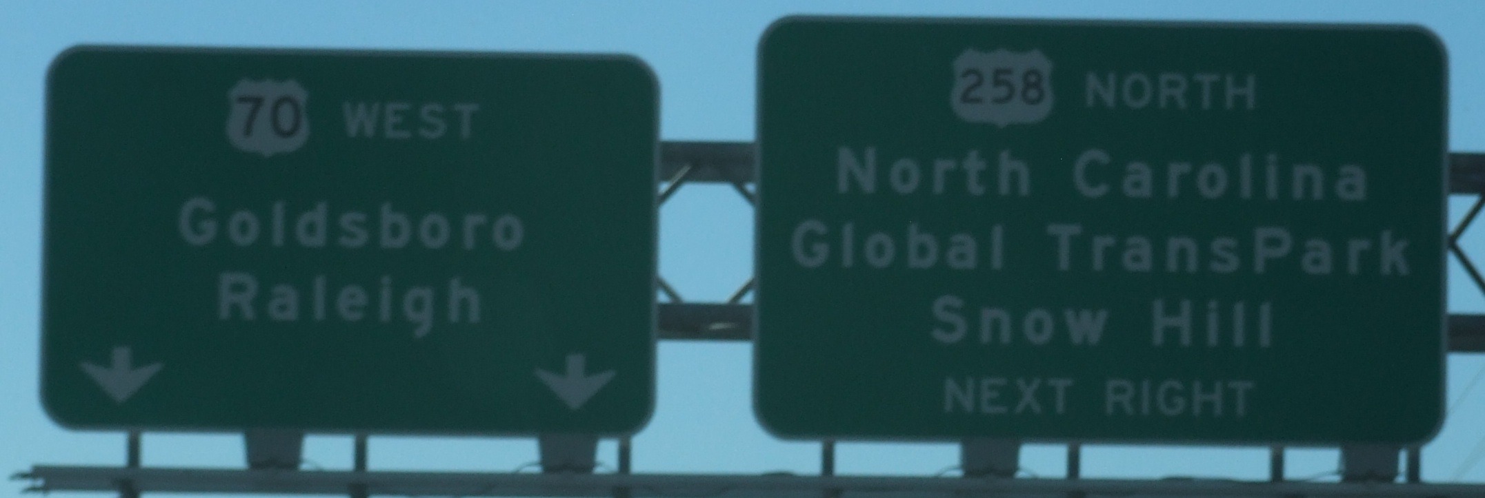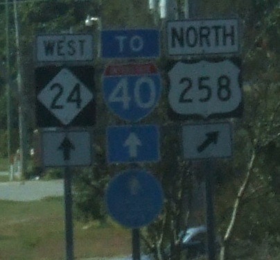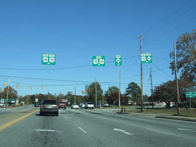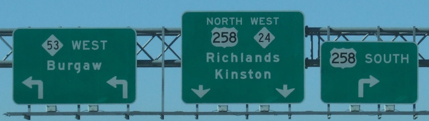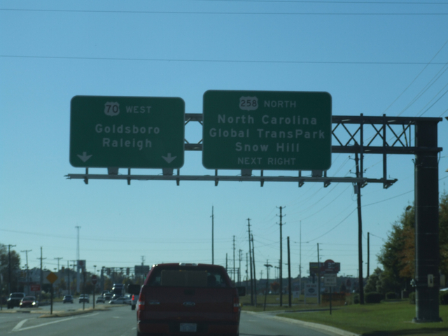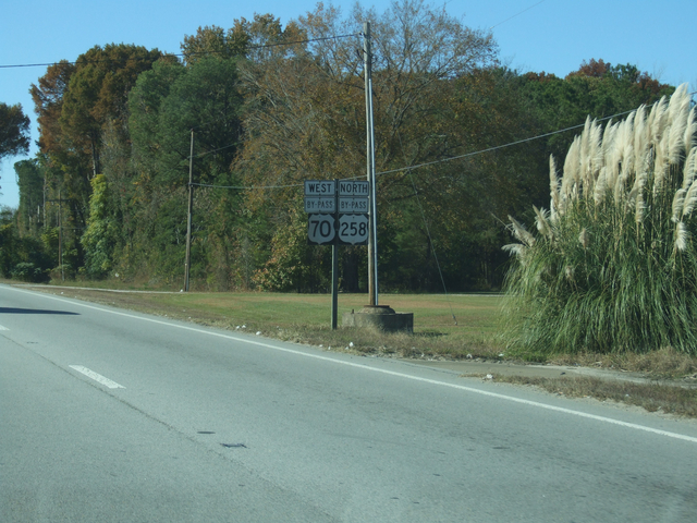 Coming up on the US 70/258 split west of Kinston.