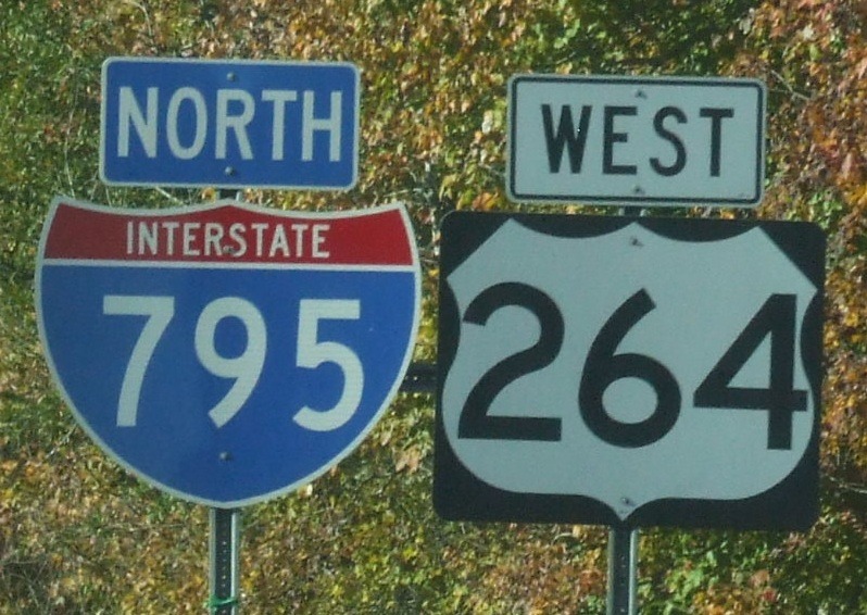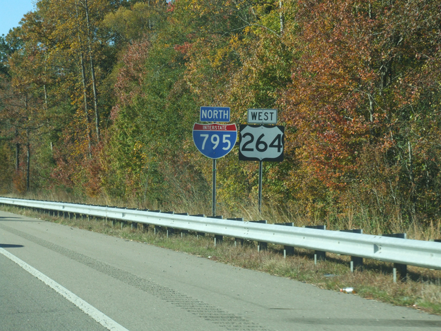 I-795 joins US 264 until I-95.