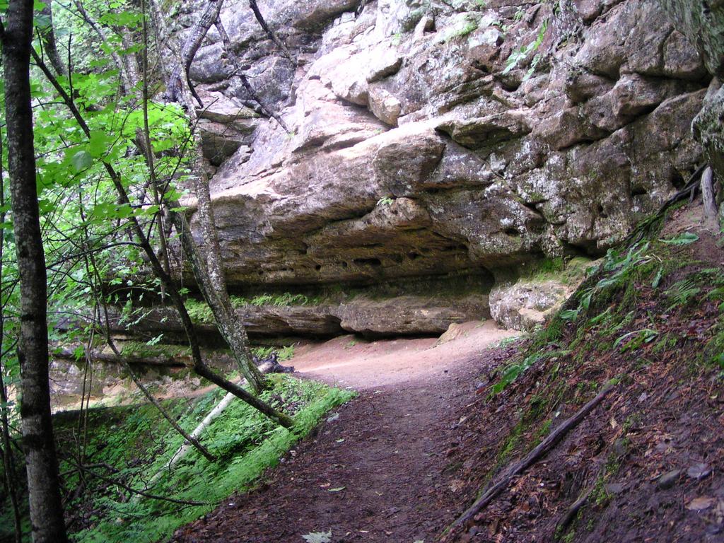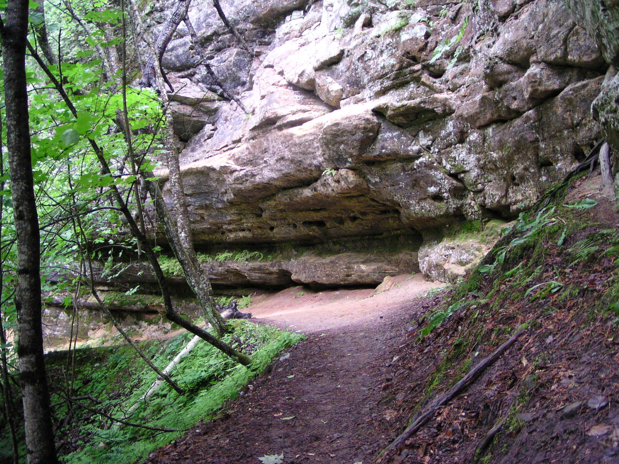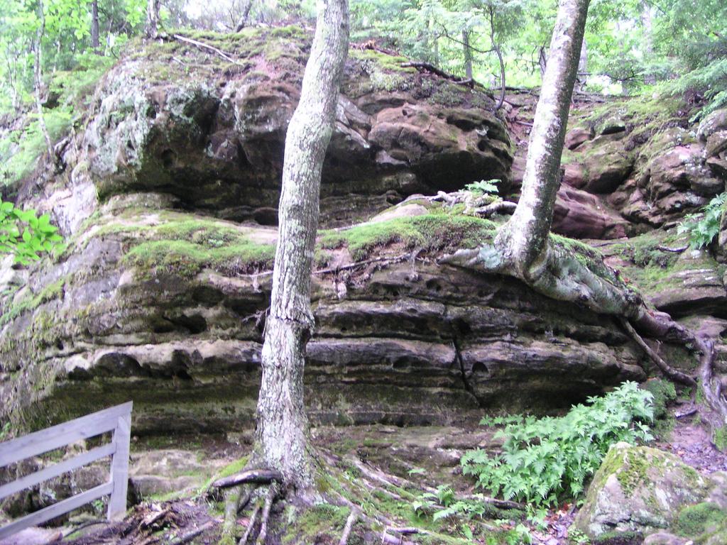 One of the sandstone walls of the canyon below the falls.