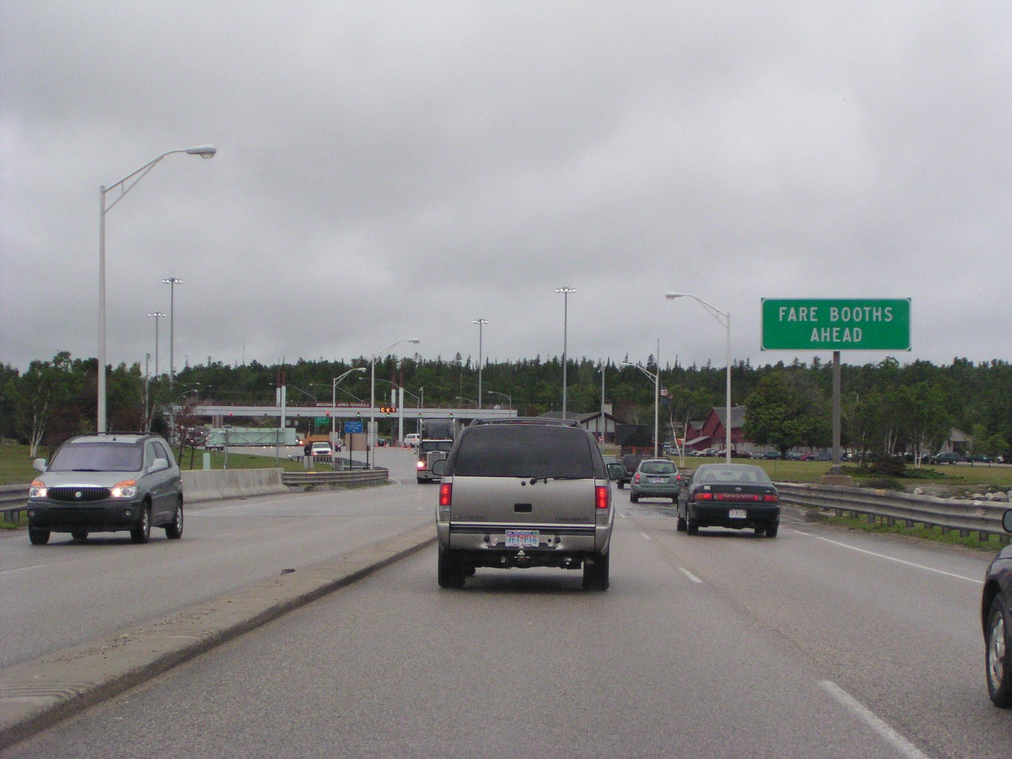 Fare booths (toll booths where I come from) on the north end of the bridge.