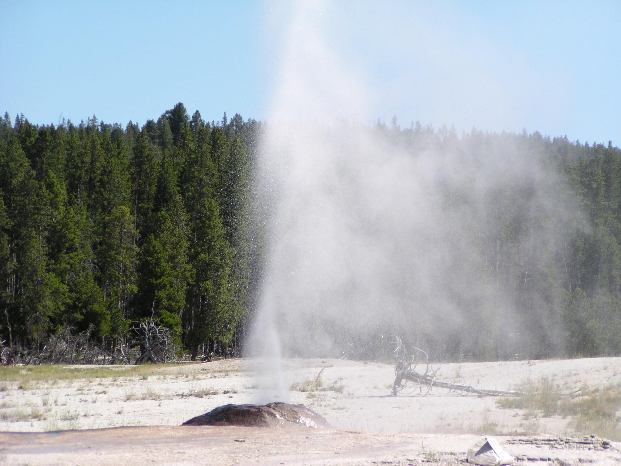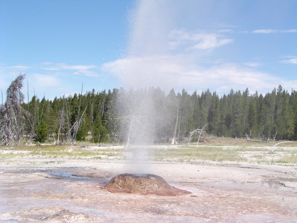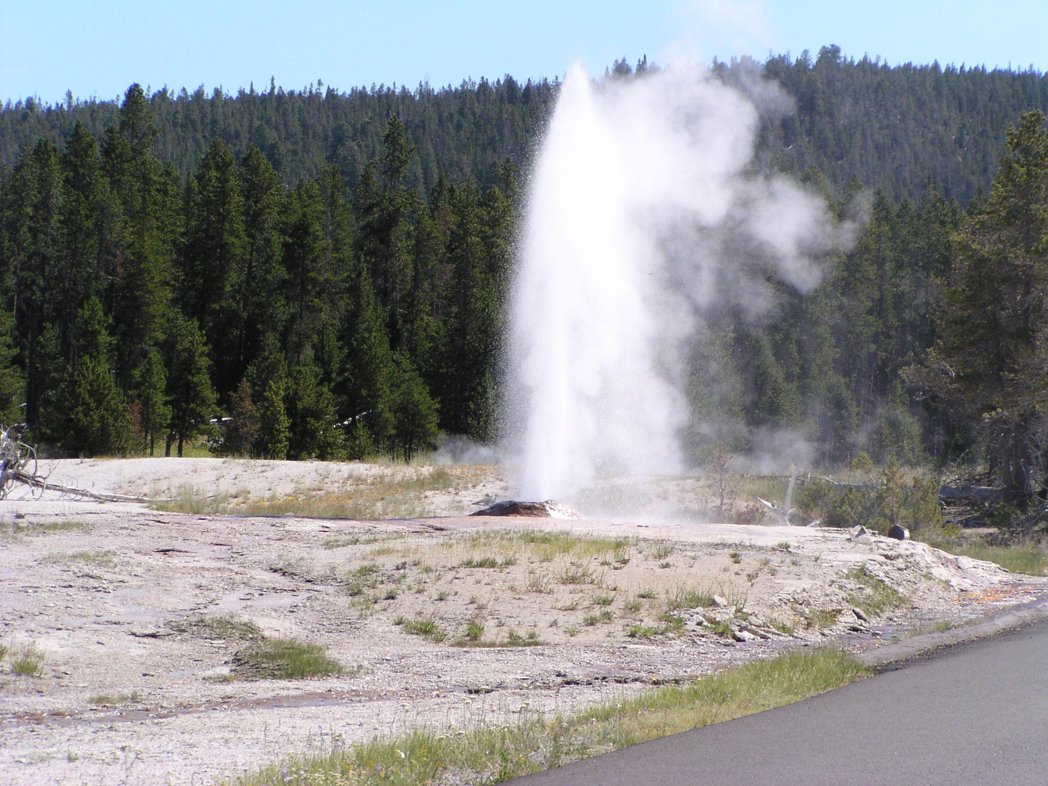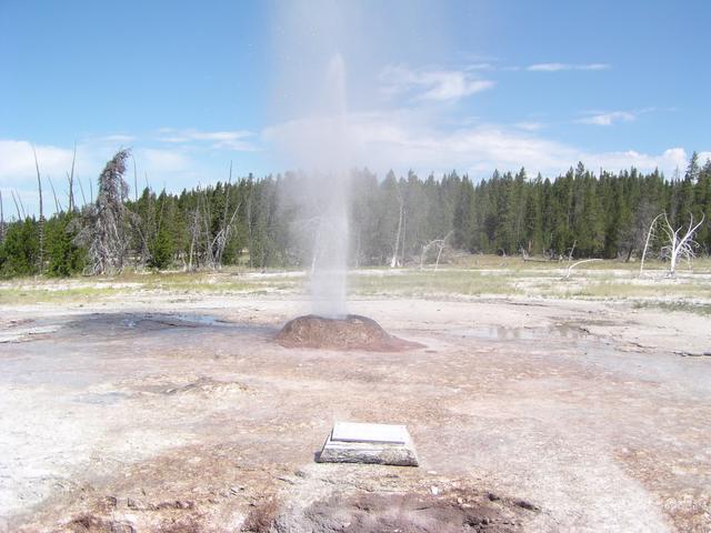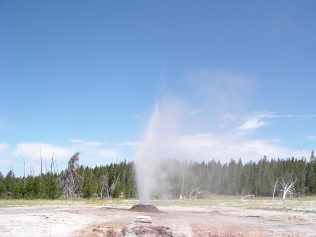 Excellent eruption of the Pink Cone Geyser along Firehole Lake Drive.