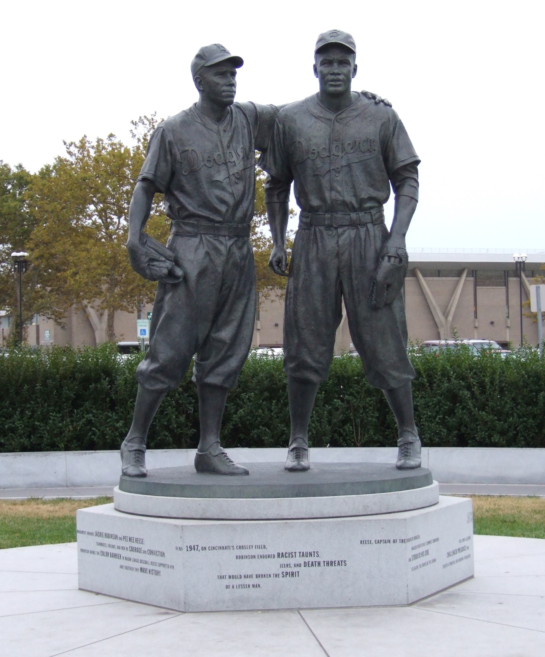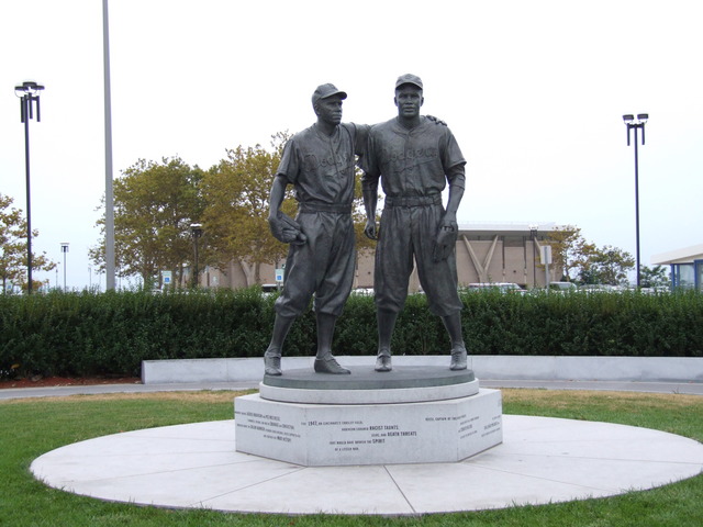 Statue of Pee Wee Reese and Jackie Robinson.
