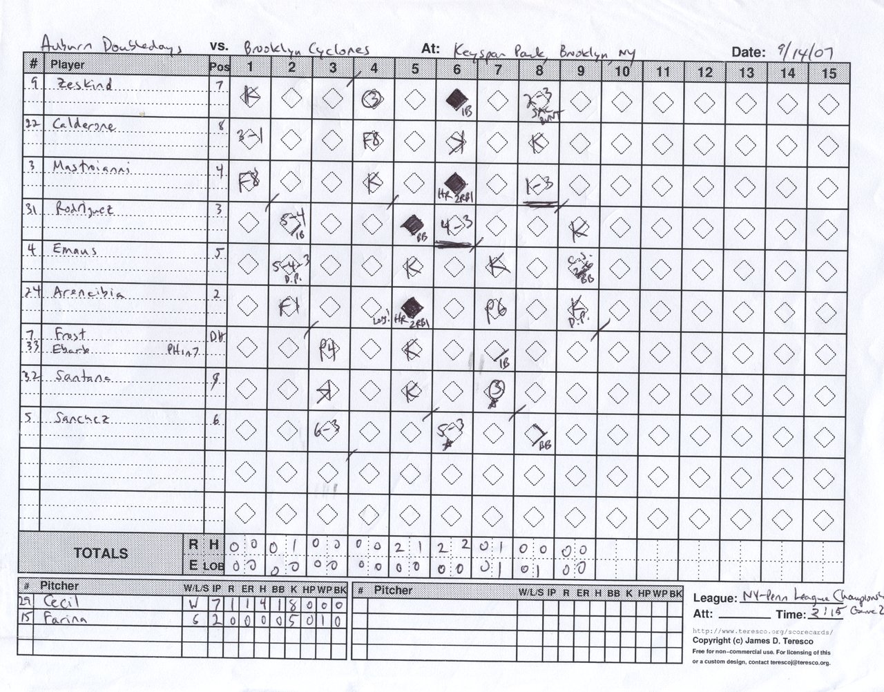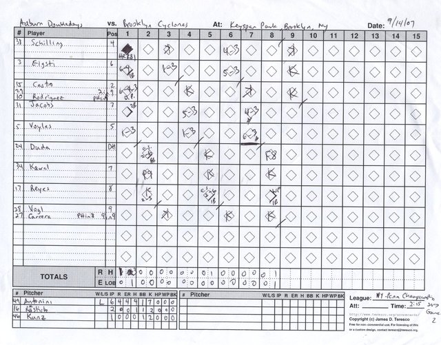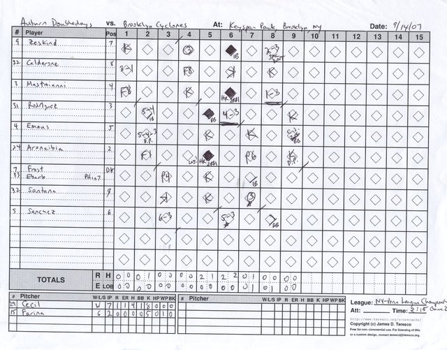 Auburn Doubledays vs. Brooklyn Cyclones, Keyspan Park, Coney Island, New York - September 14, 2007