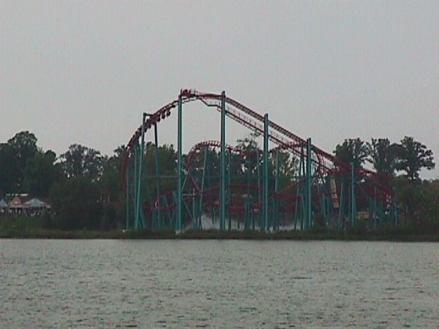 A roller coaster at Geauga Lake, the other park across the lake.