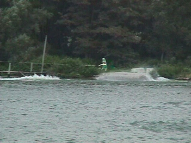 The water ski show from a distance. Close enough for all of us though.
