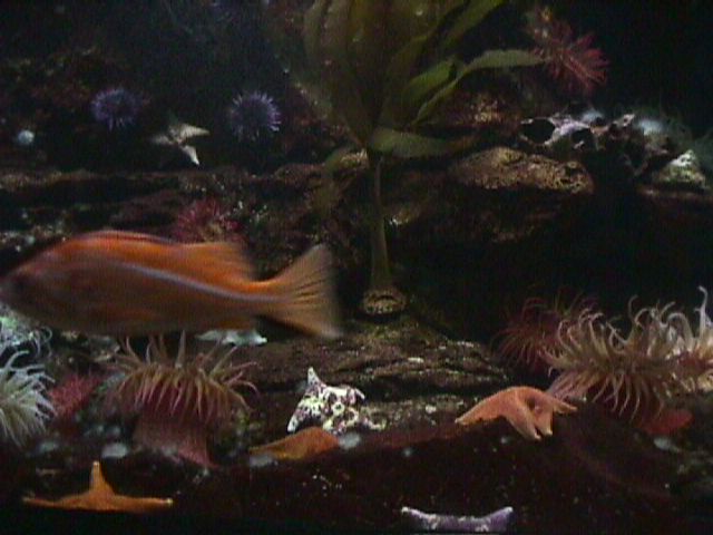 The Northwest Pacific Coast exhibit. The fish is a Canary Rockfish. Bat