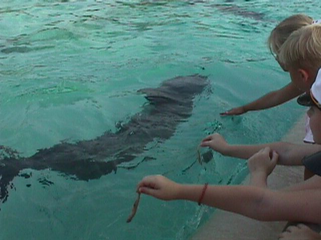 Pet the Southern stingray. Also pictured - Yellow Tangs.