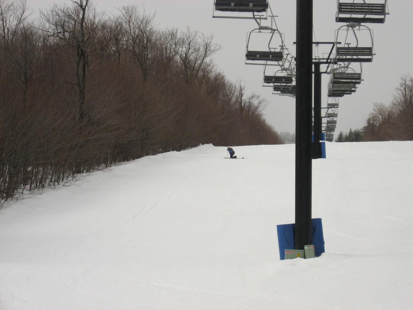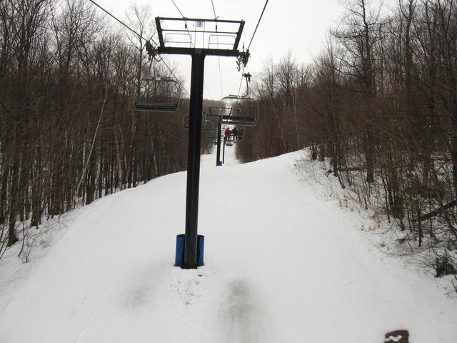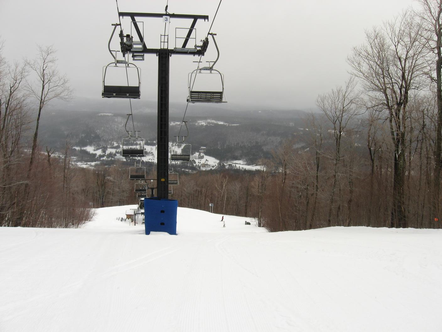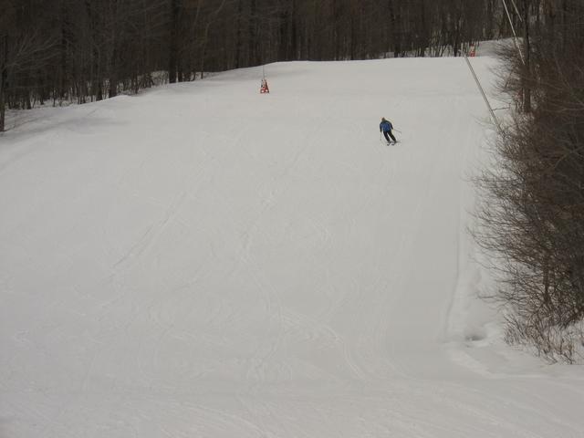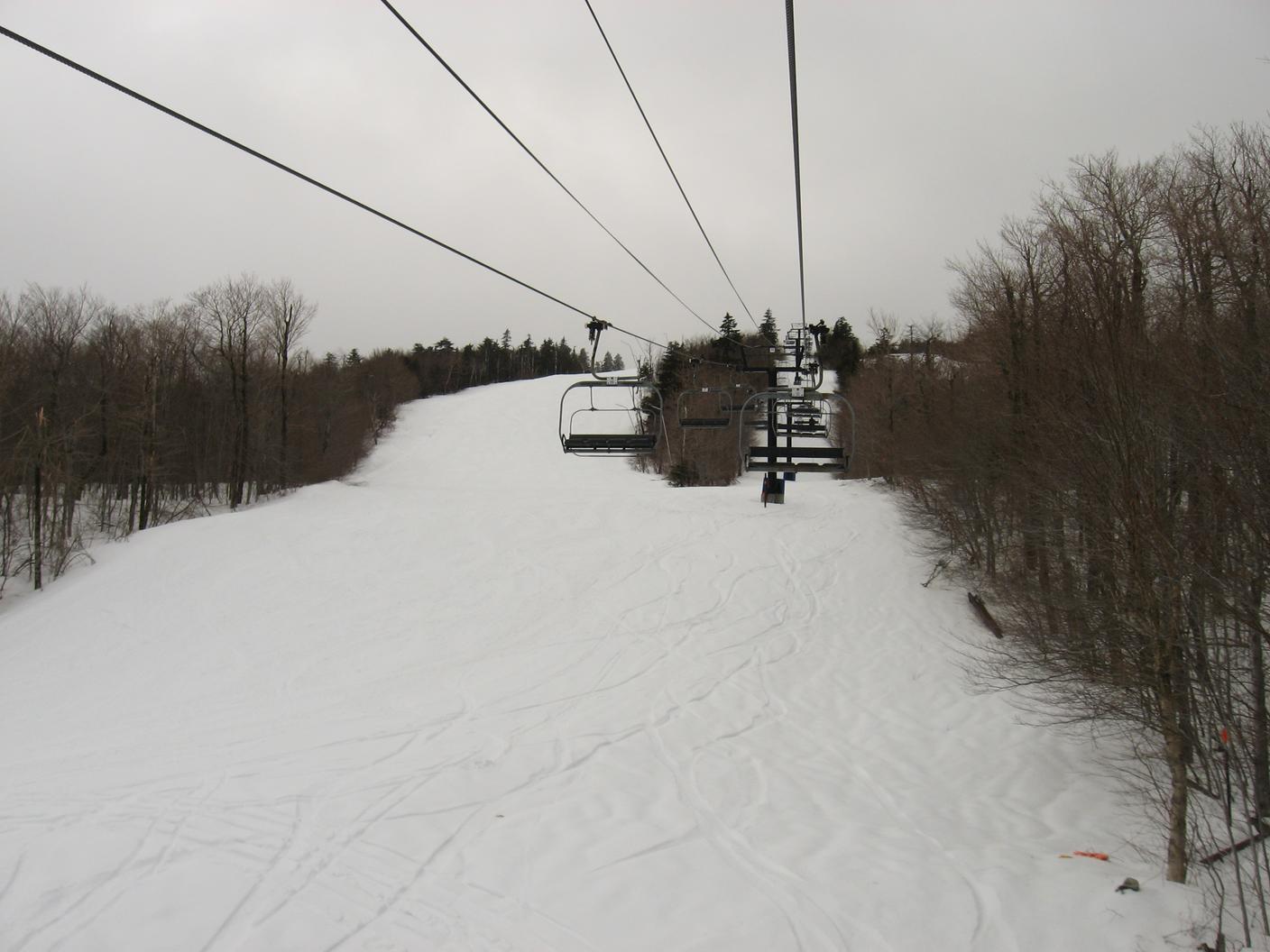Skiing down Timberline, under the Green Ridge Triple.